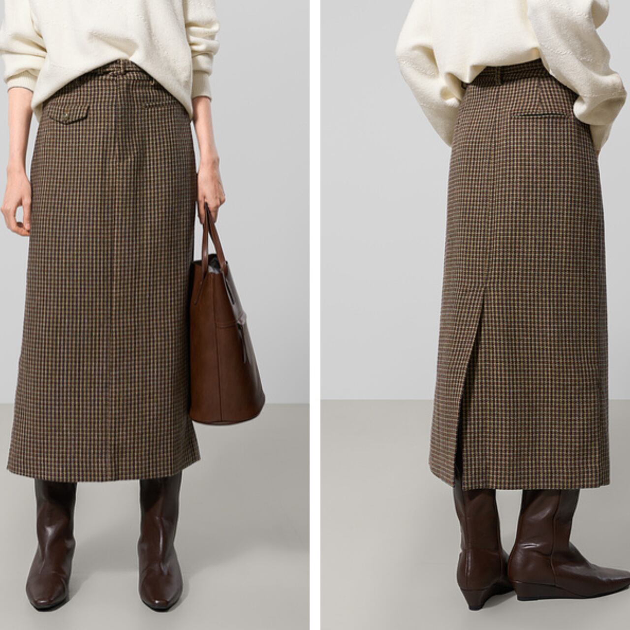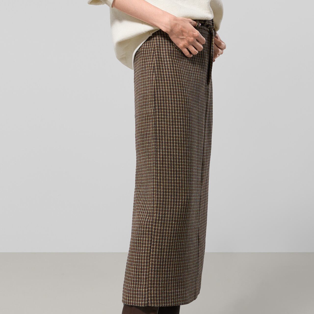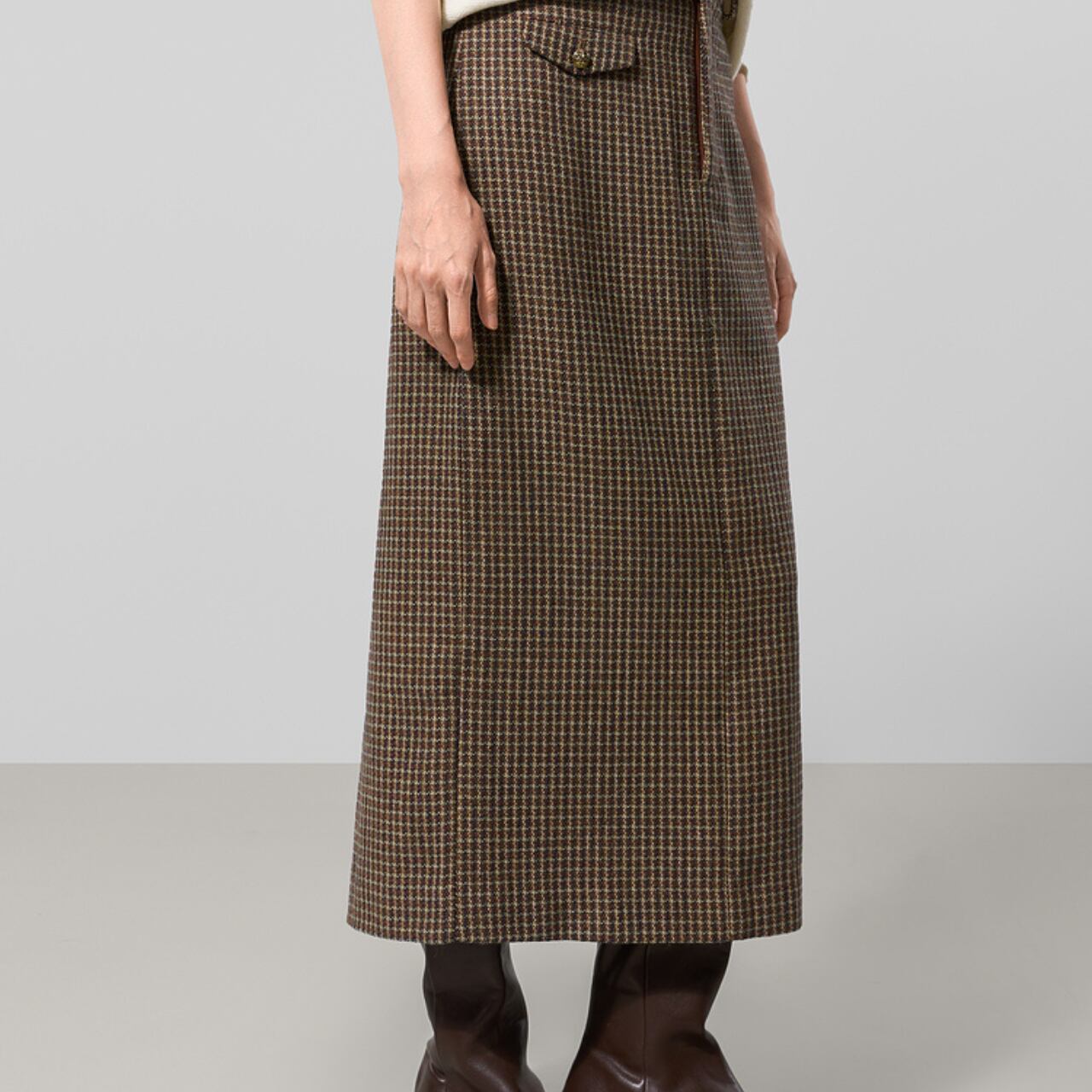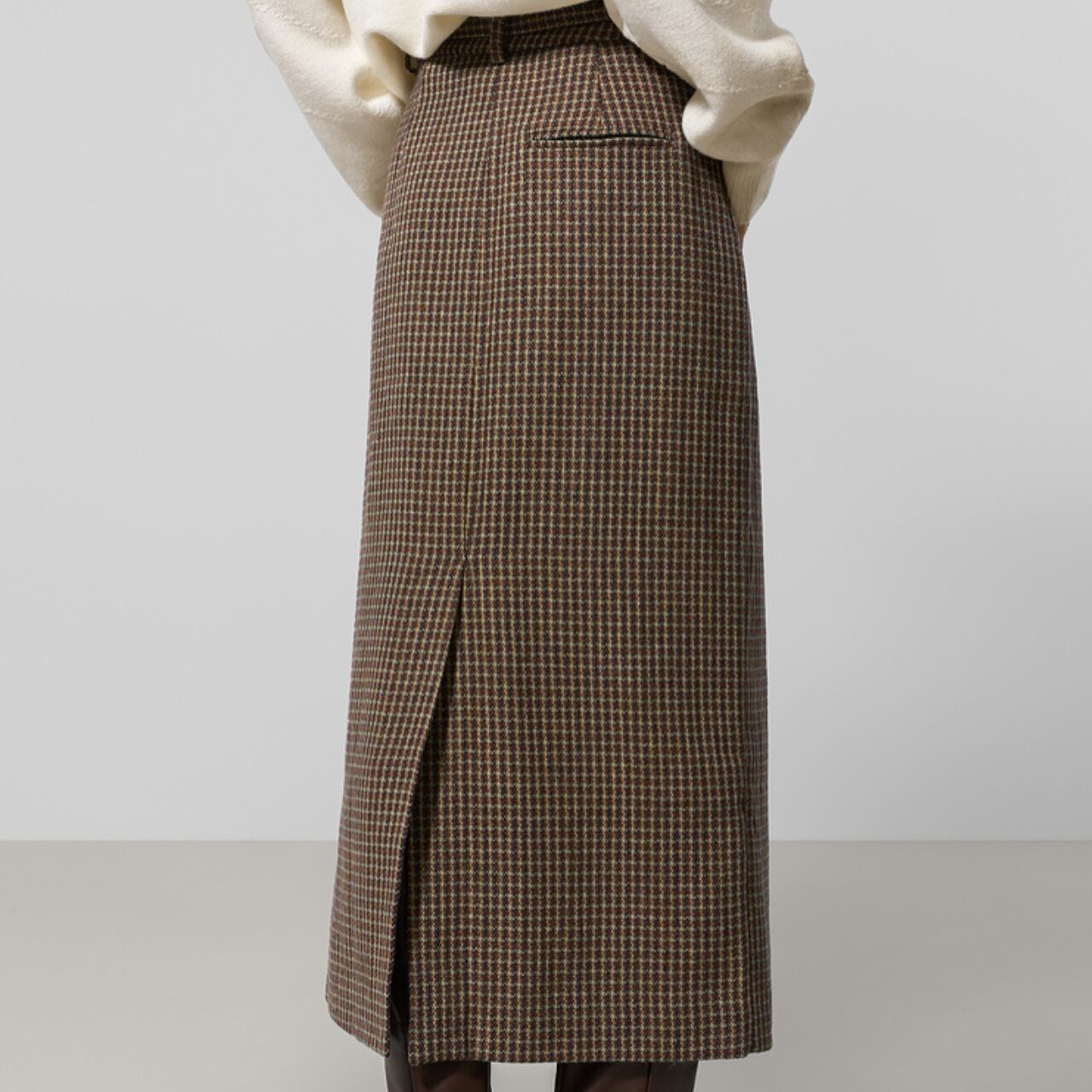 ラップ風ミモレ丈スカート。