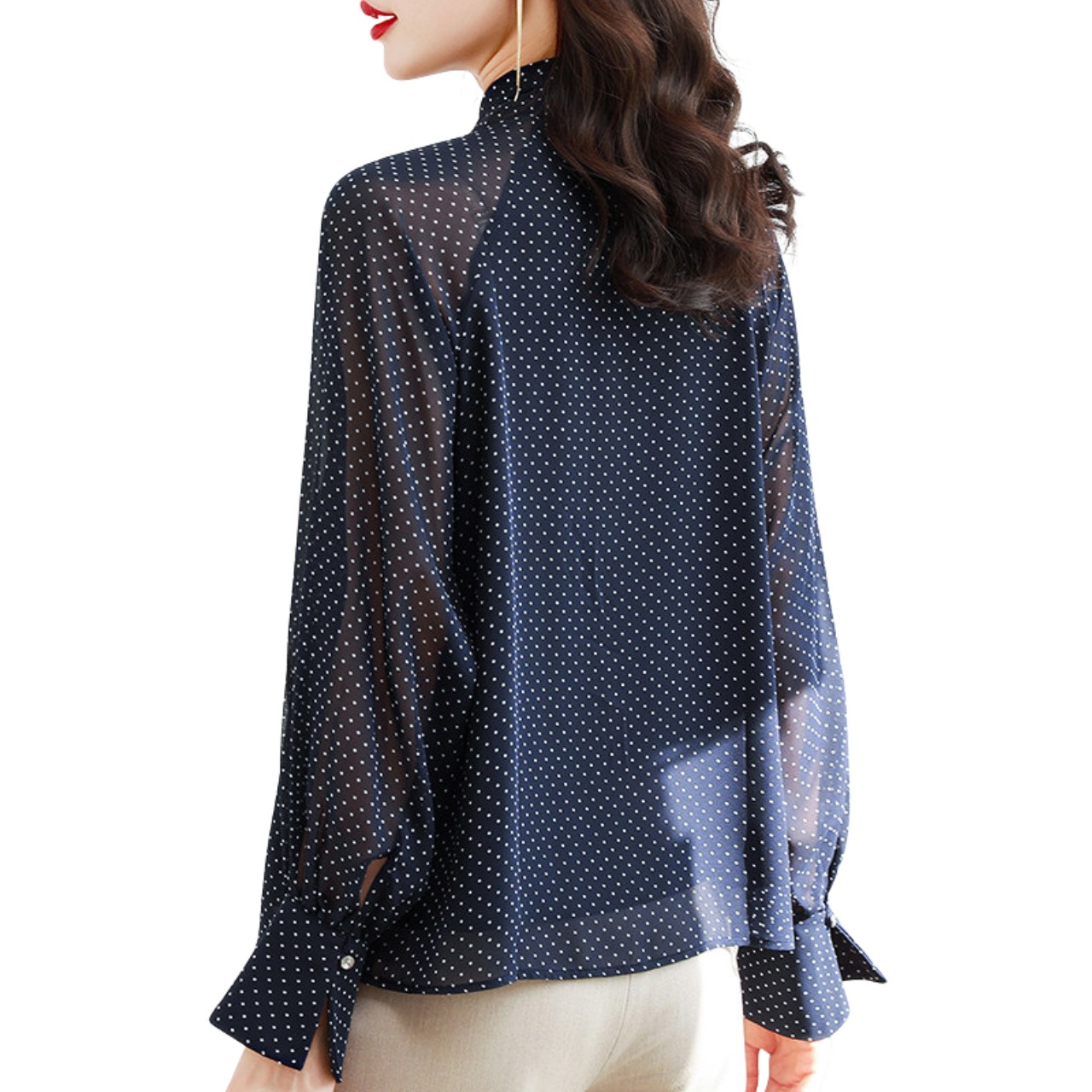 ドット柄ブラウス。