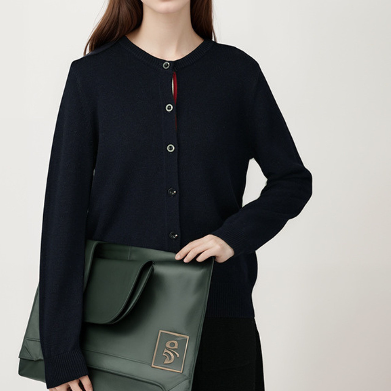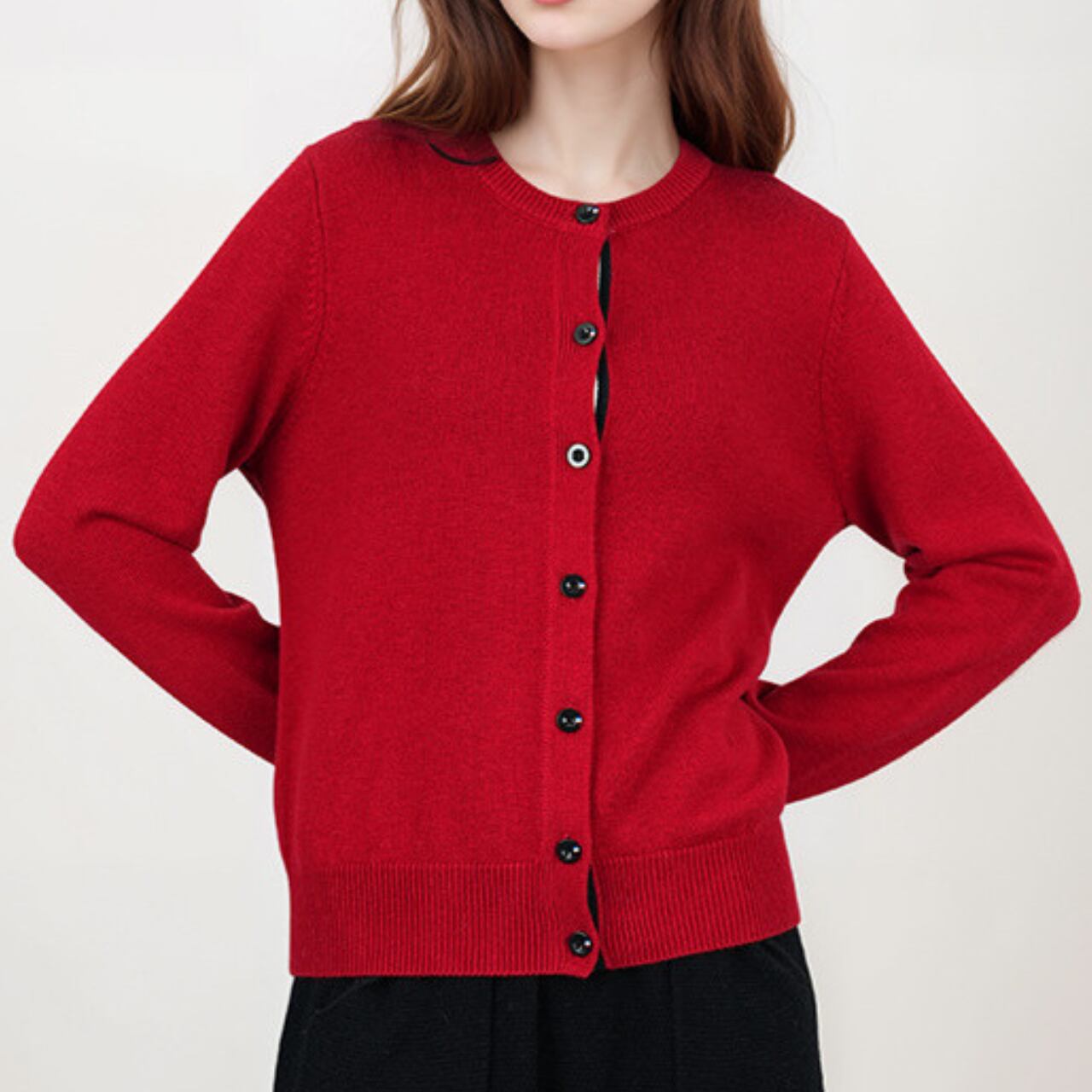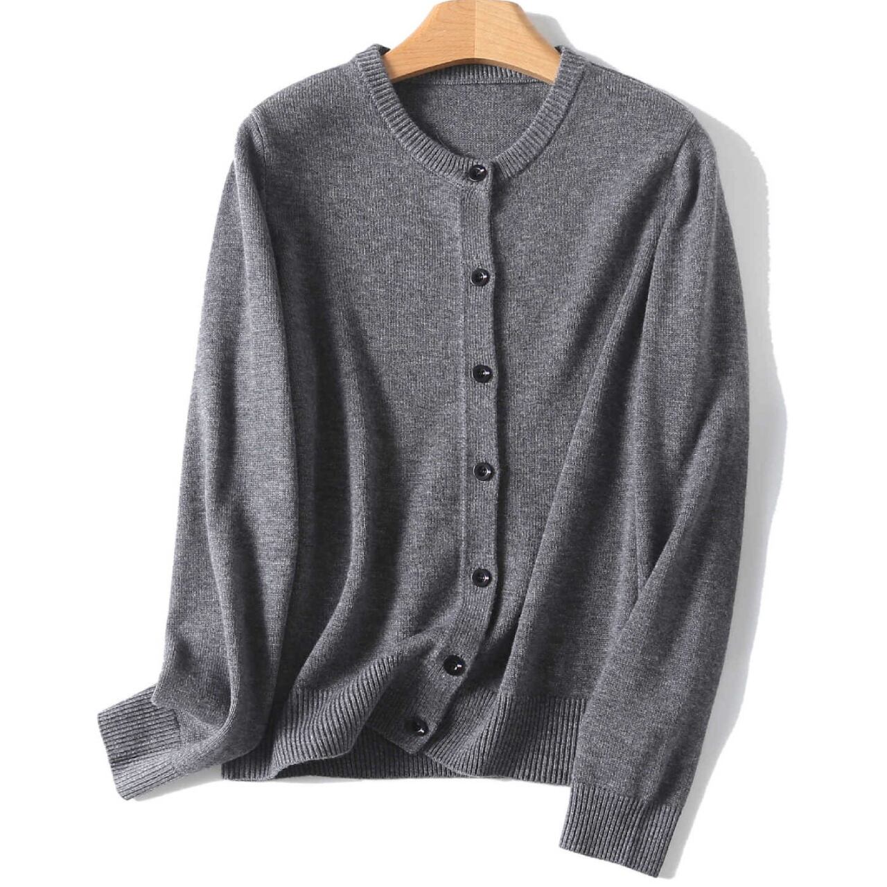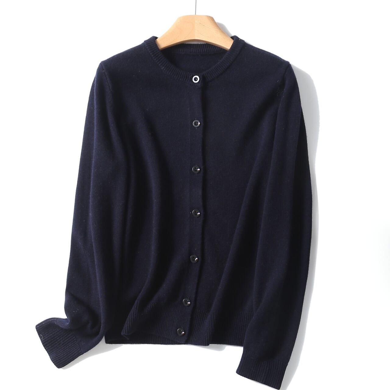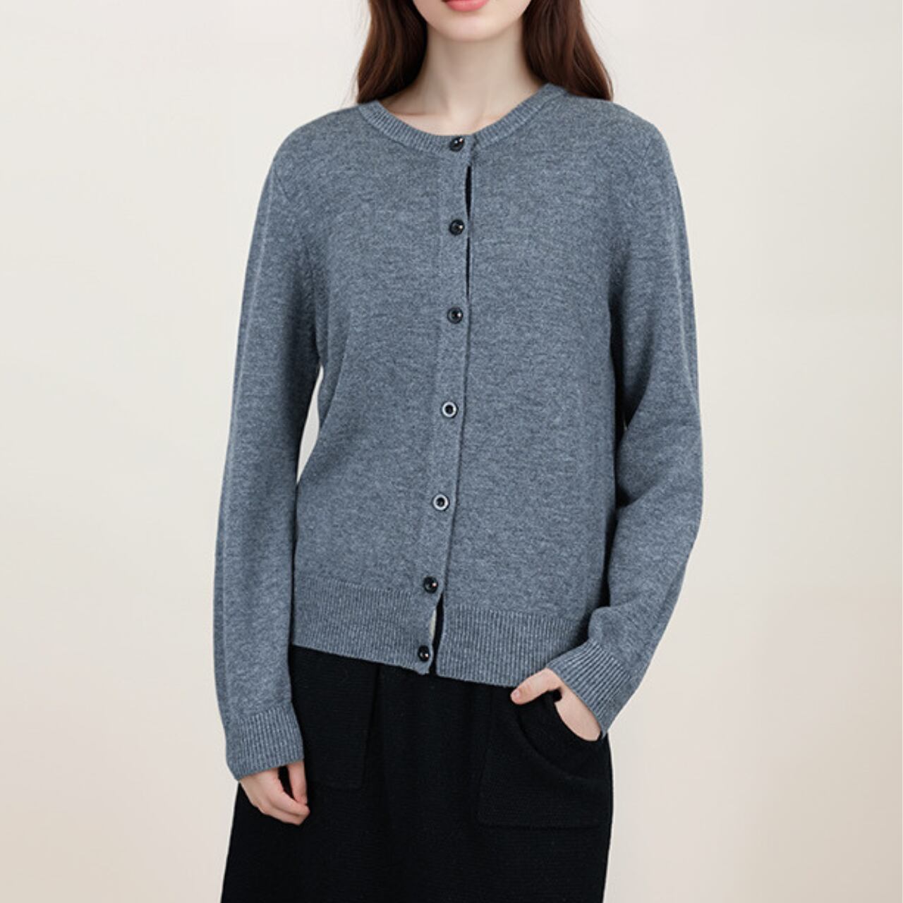 00036 ボタンフロント 長袖 クルーネック ニットカーディガン