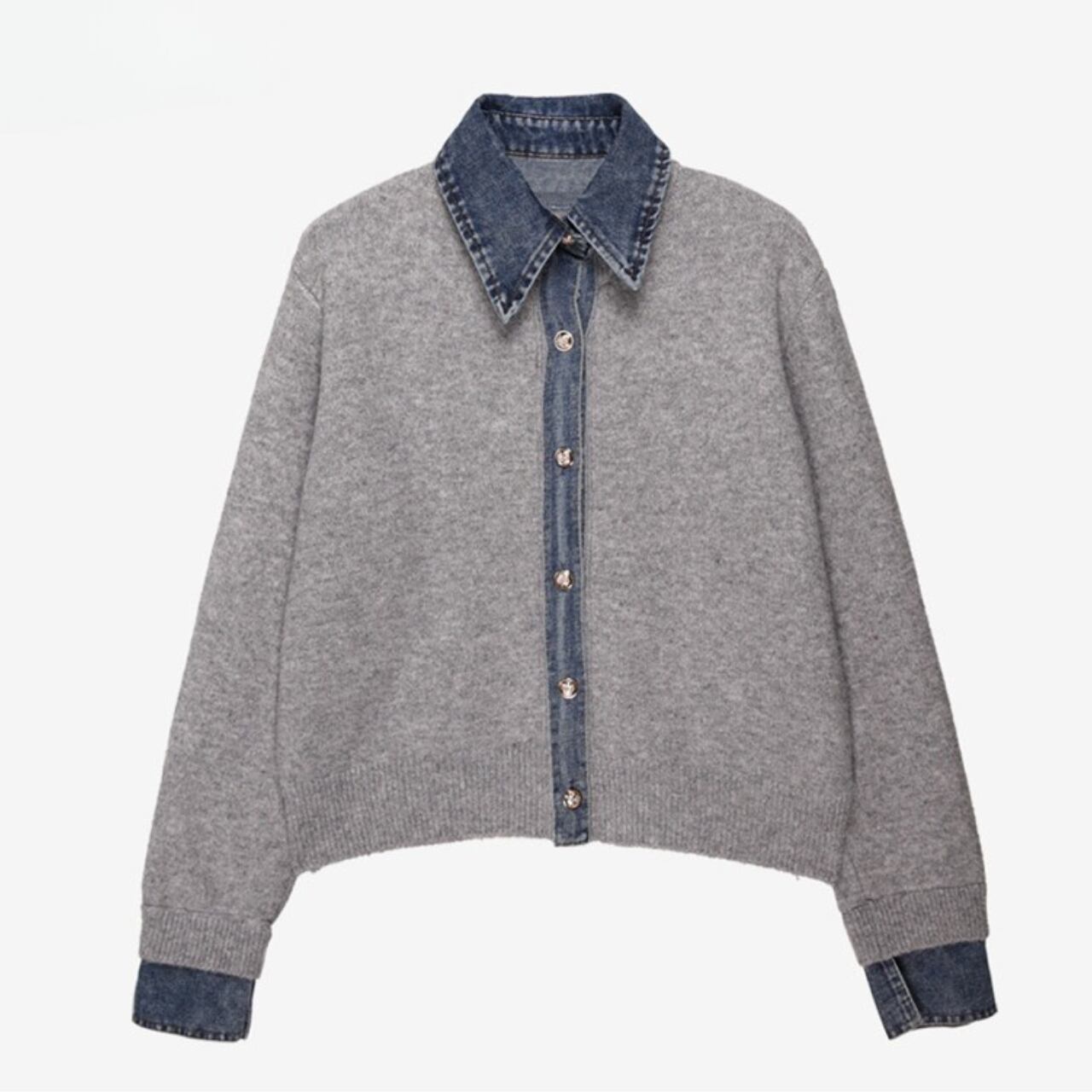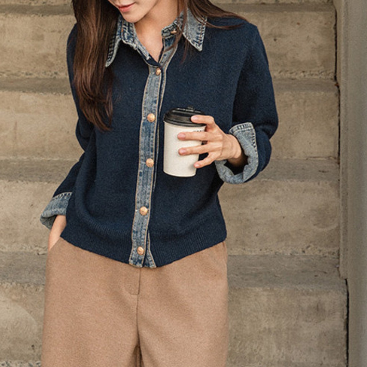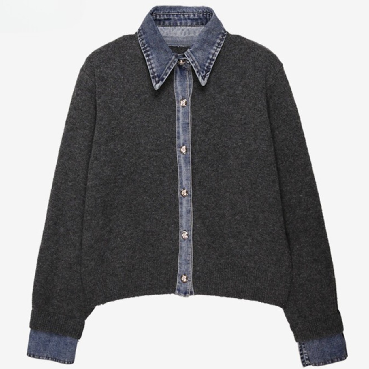 00040 シャツカラー ボタンフロント 腰丈 ニットカーディガン