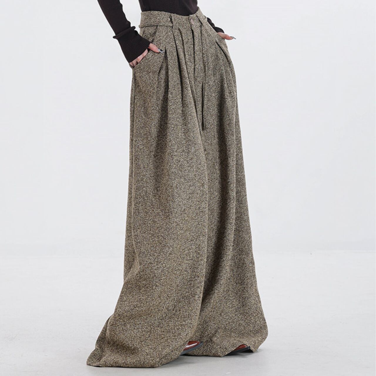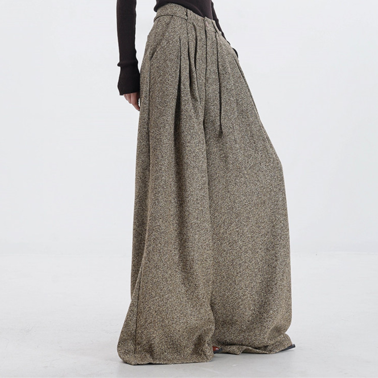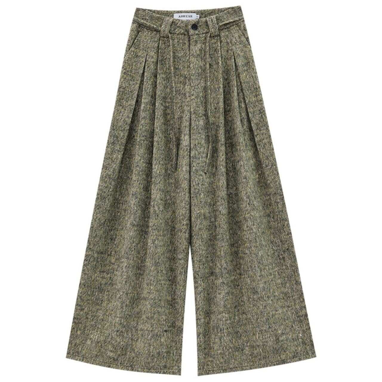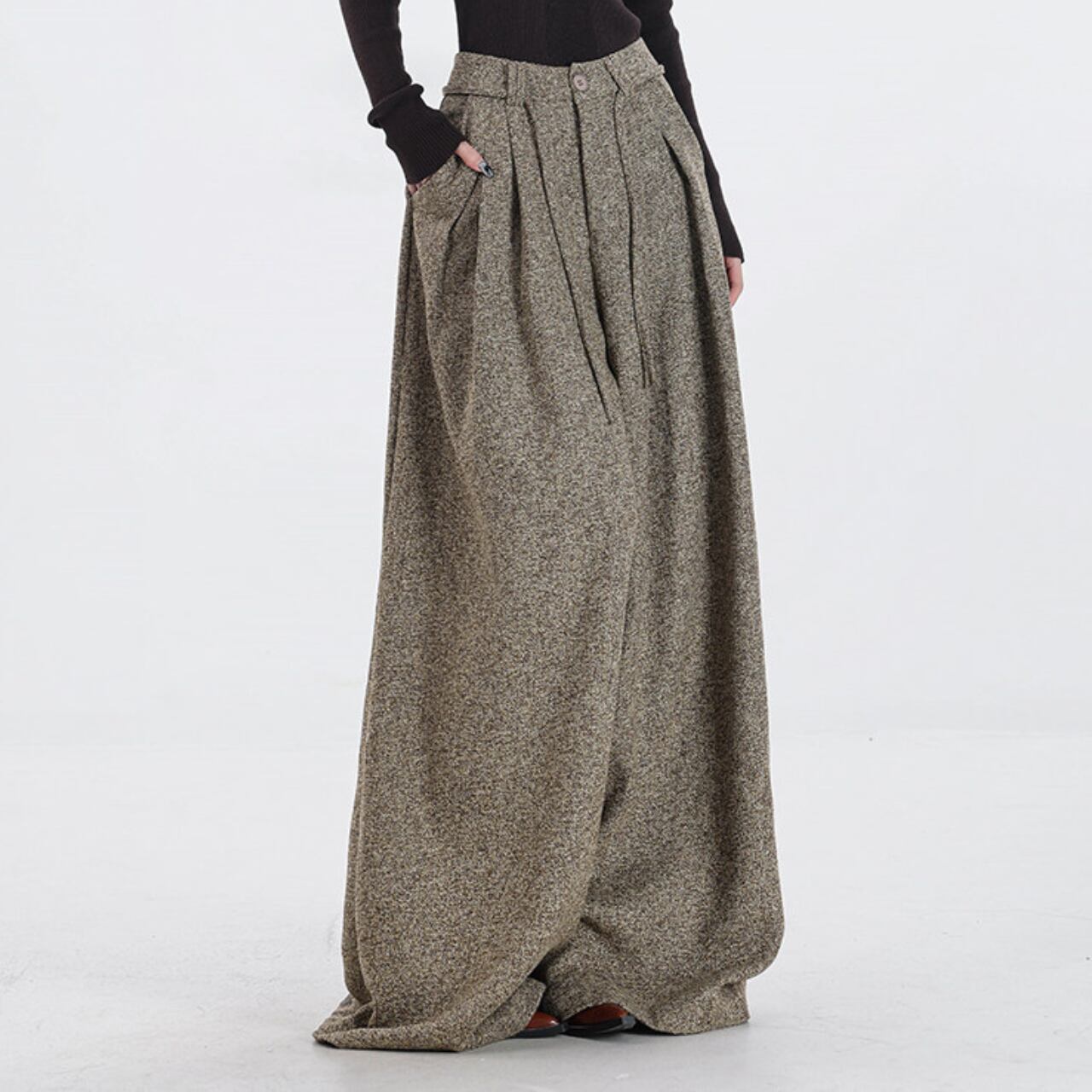 00032 プリーツ入り ワイドレッグ フルレングス パンツ