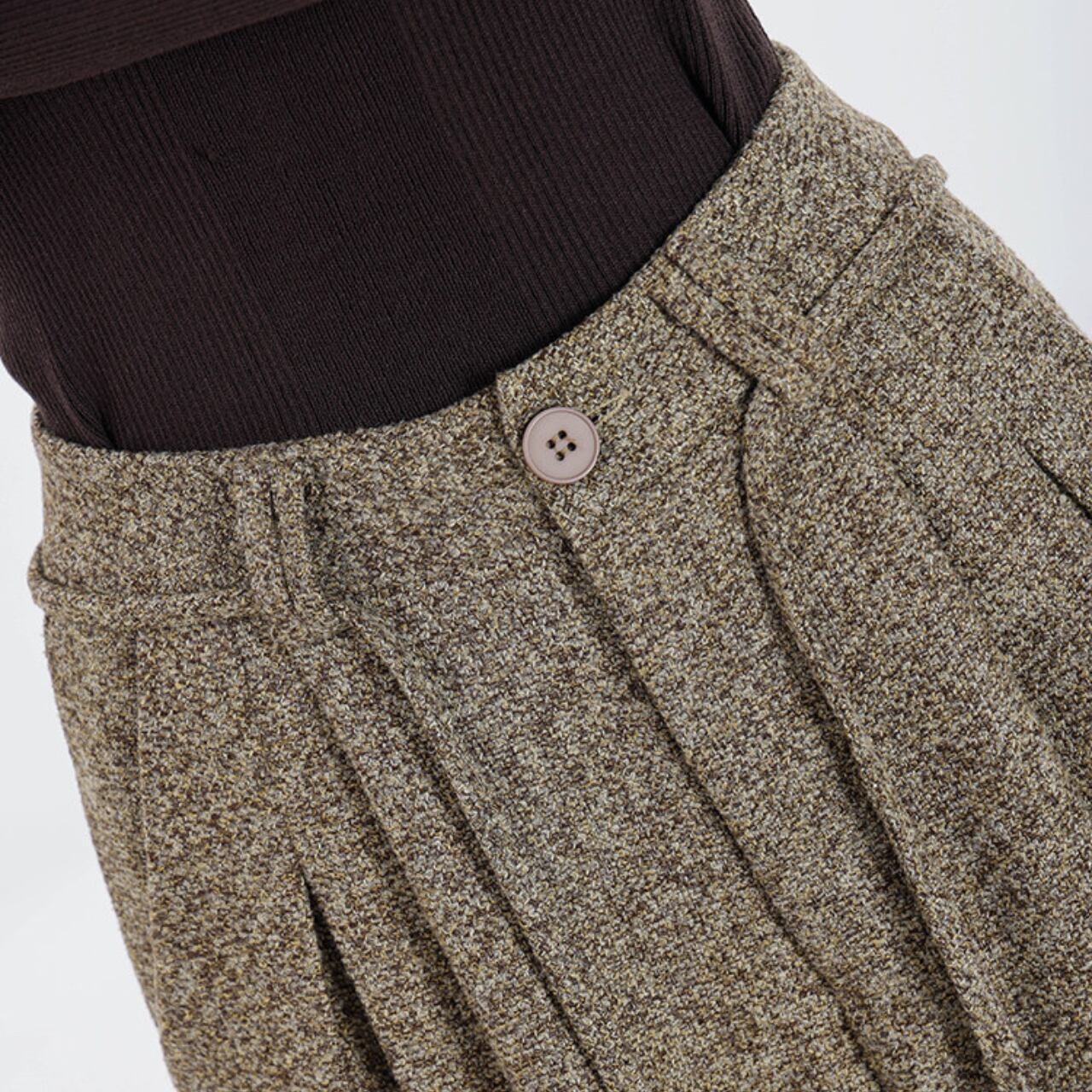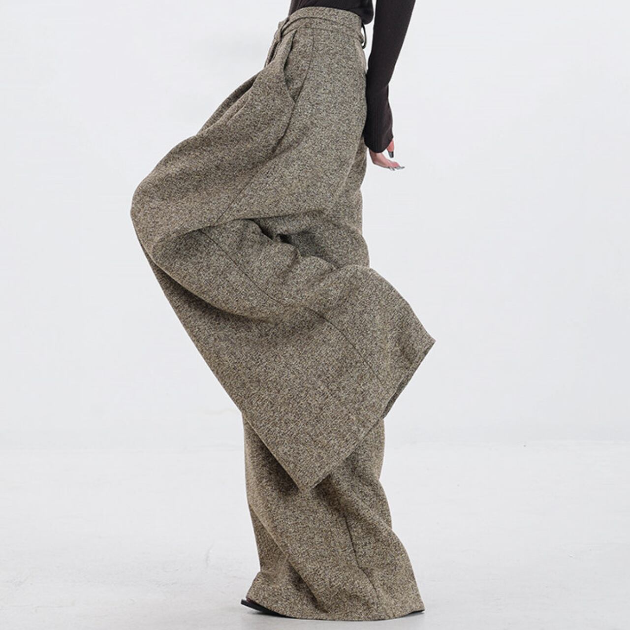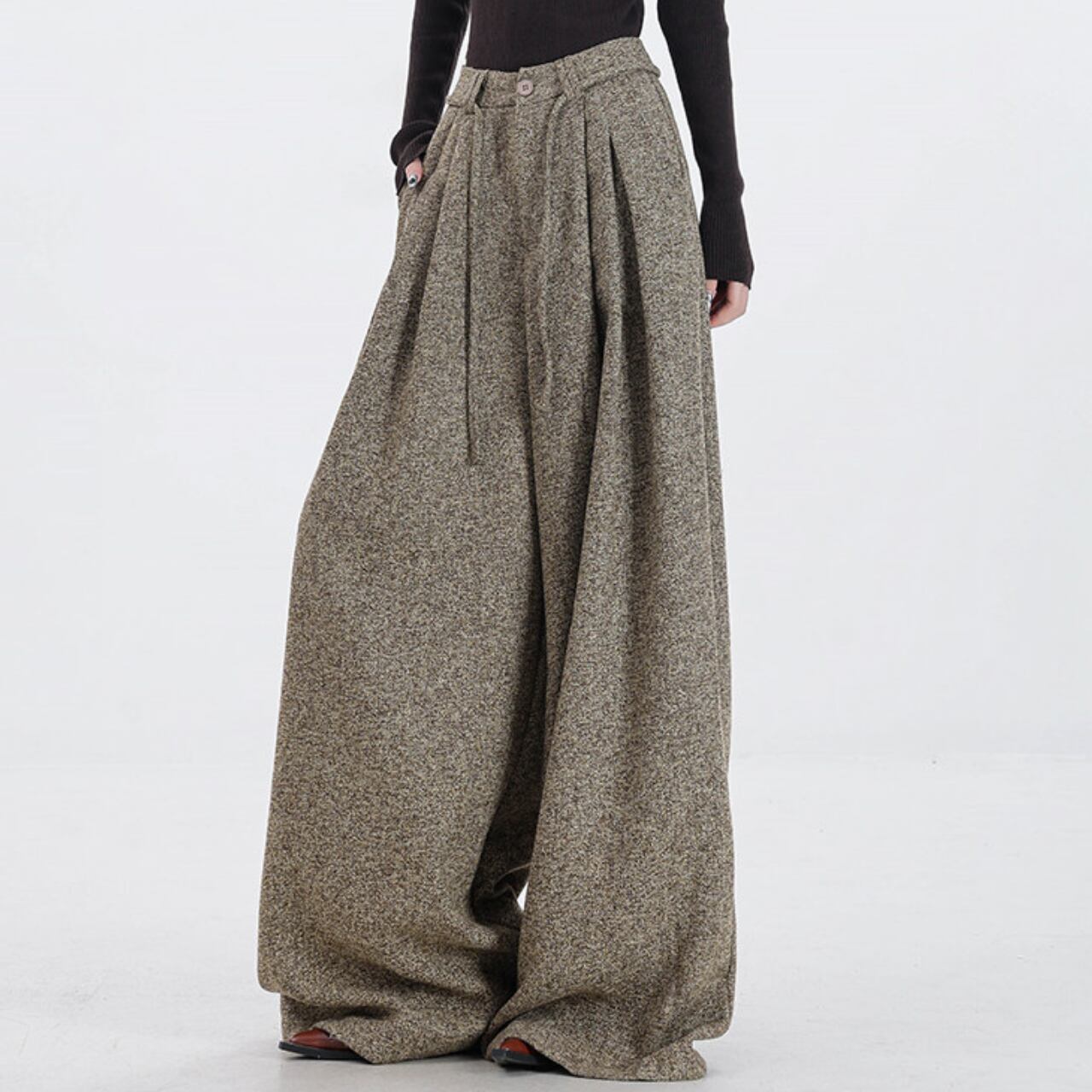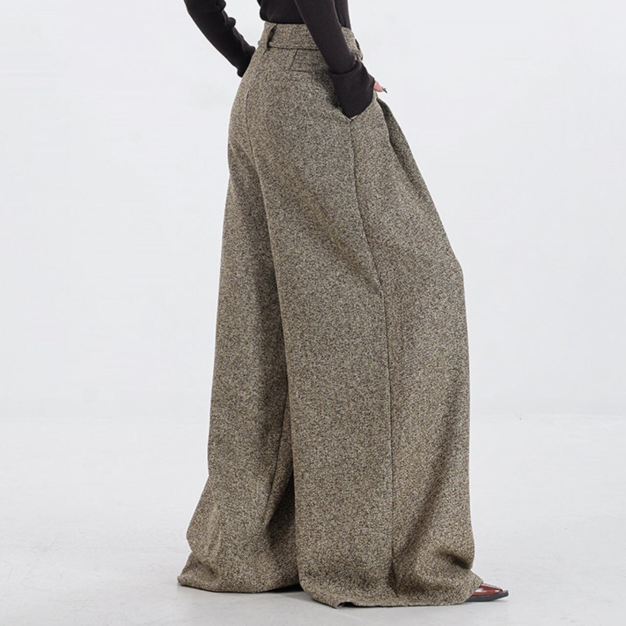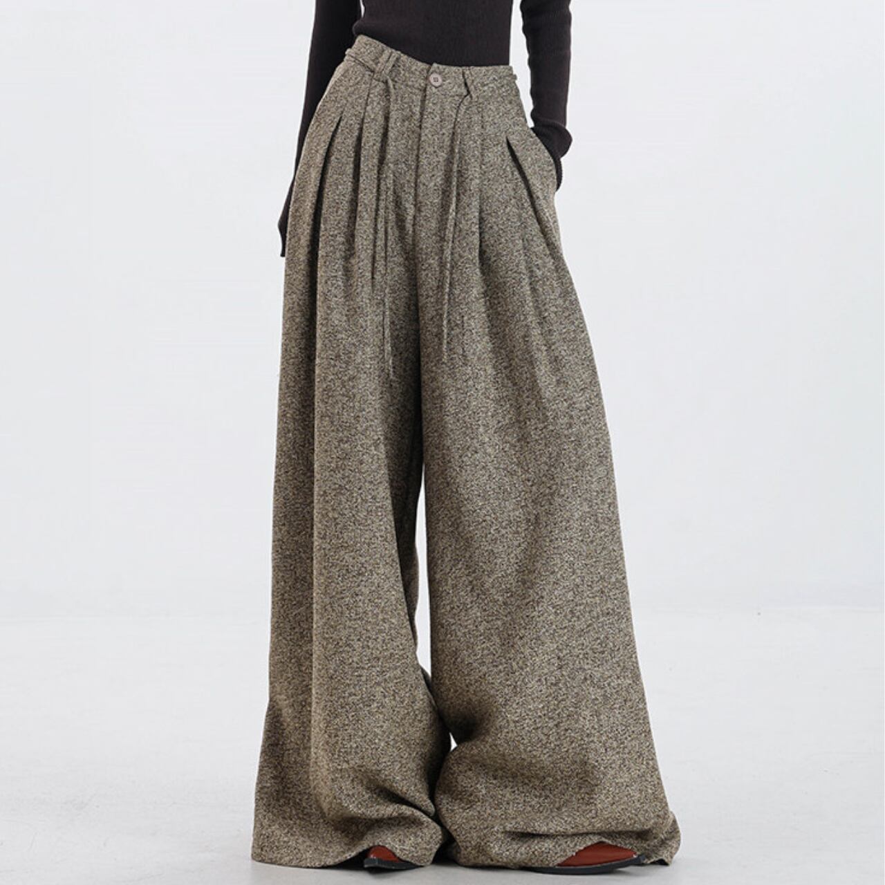 00032 プリーツ入り ワイドレッグ フルレングス パンツ