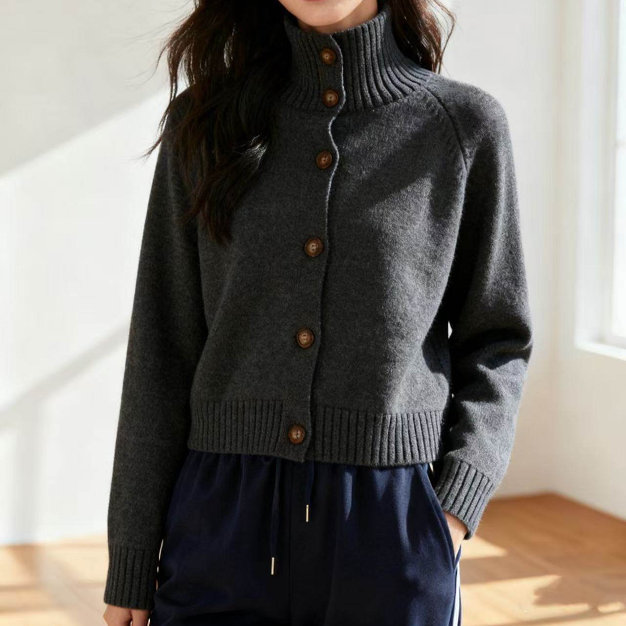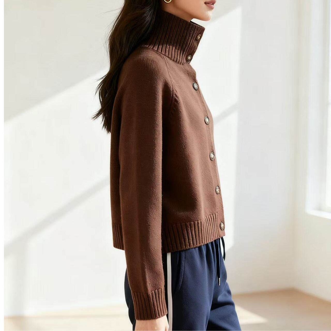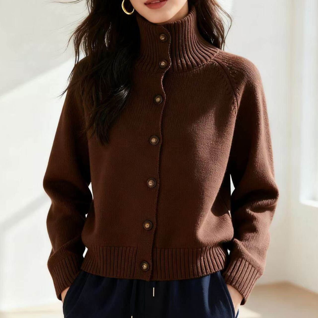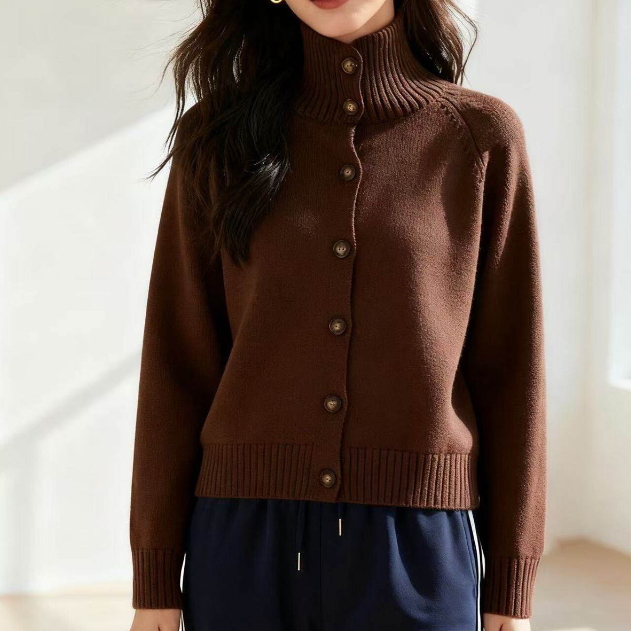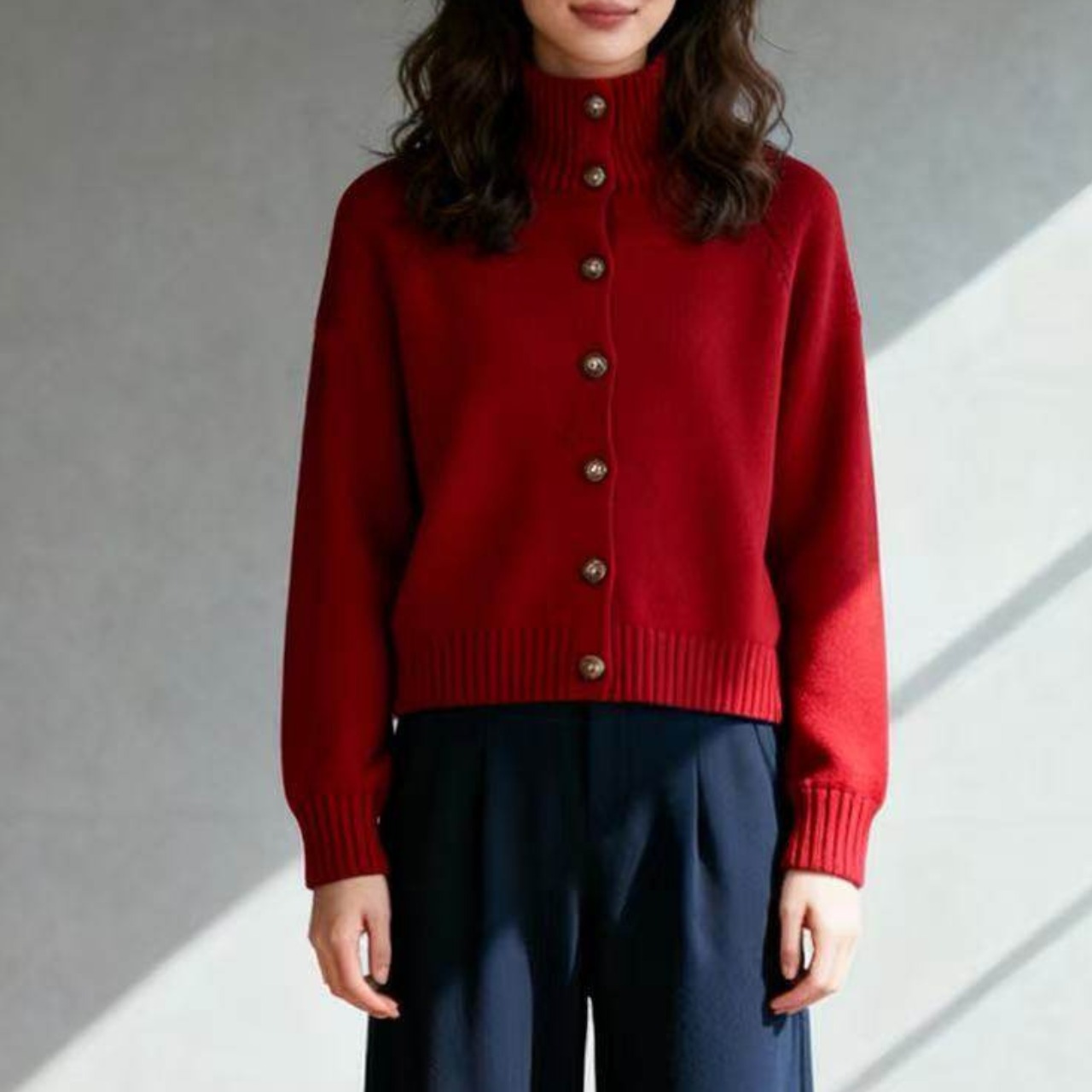 ボタンフロントニットカーディガン。
