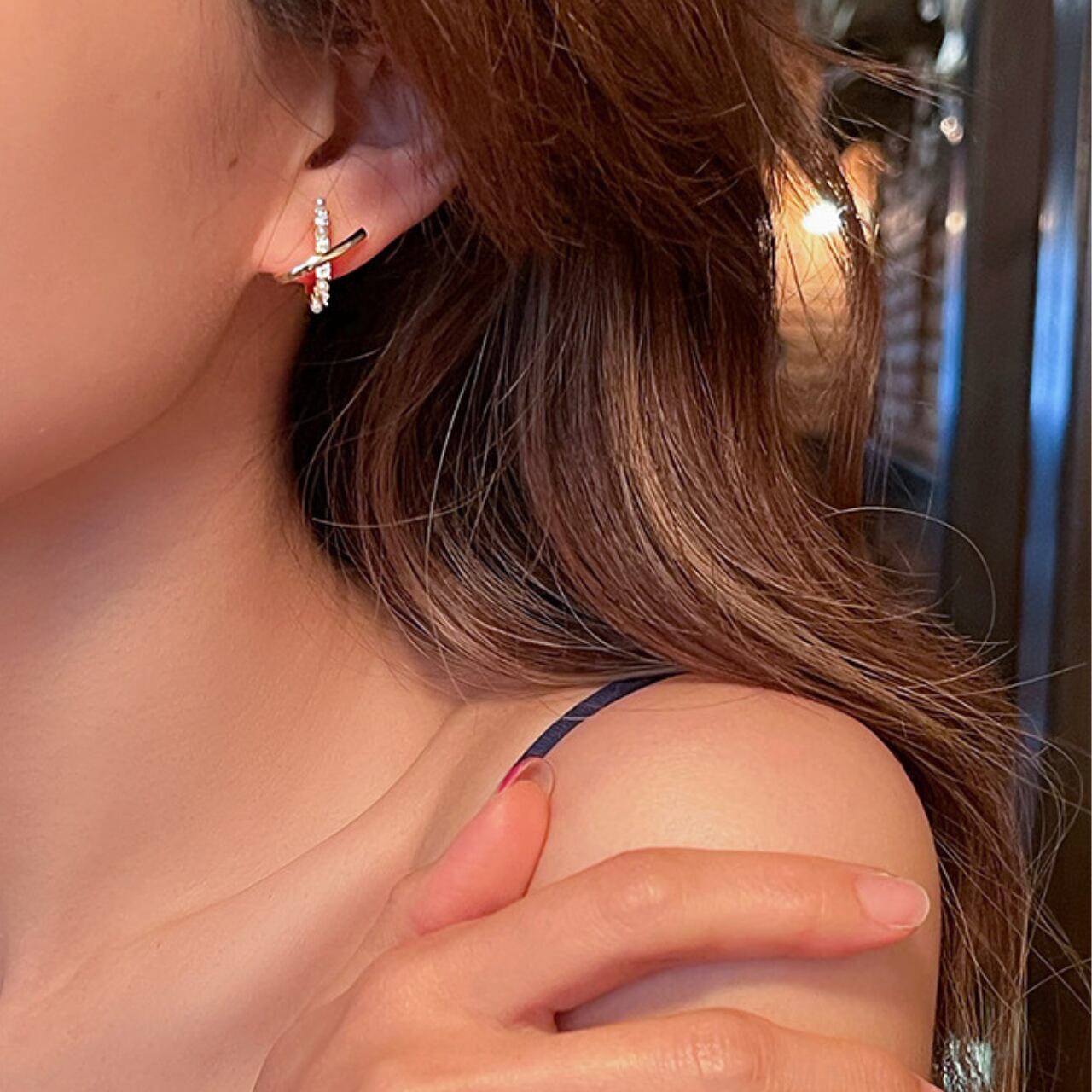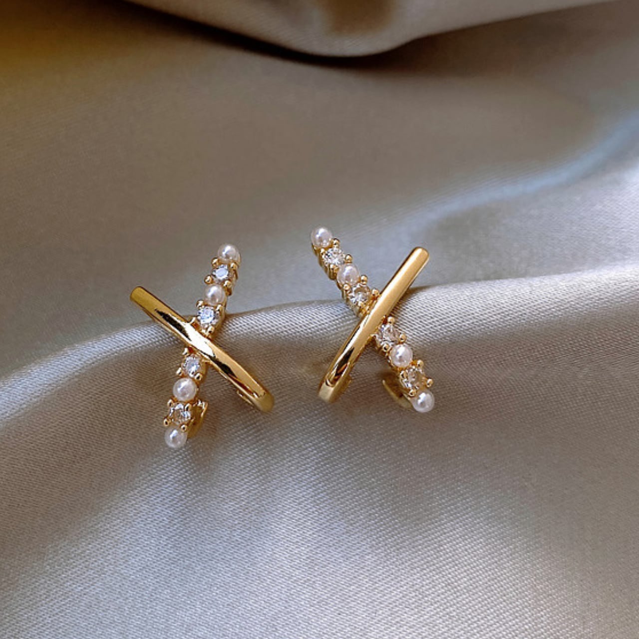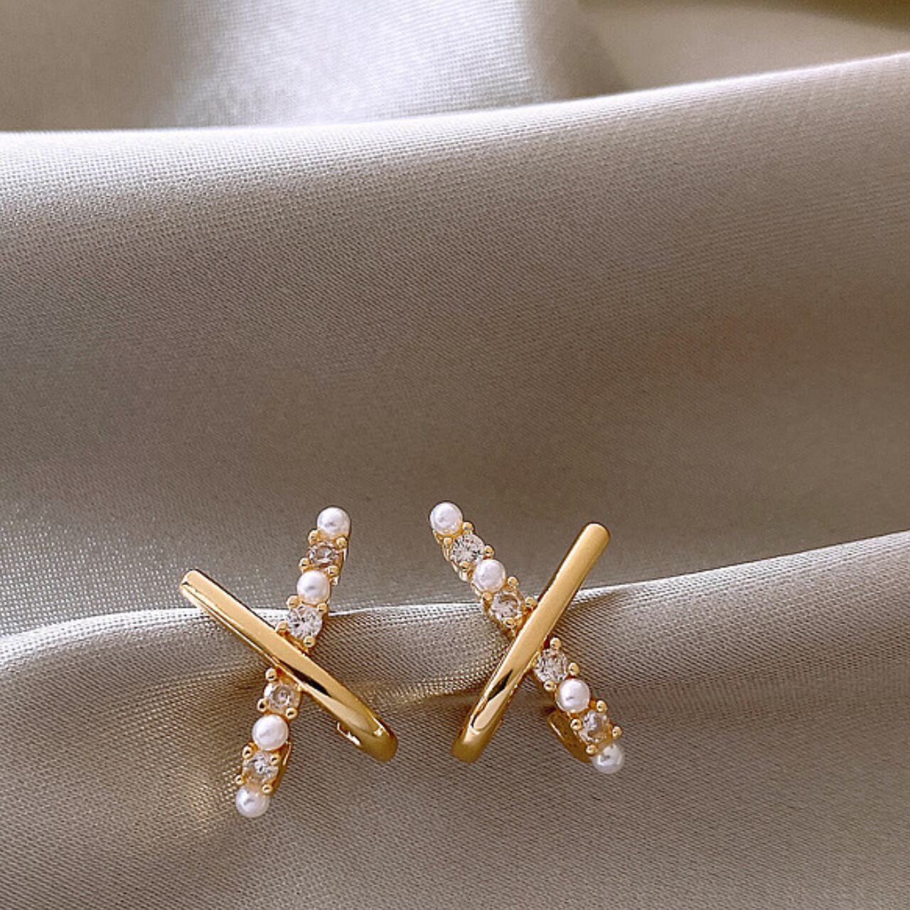 クロスデザインのスタッドピアス。