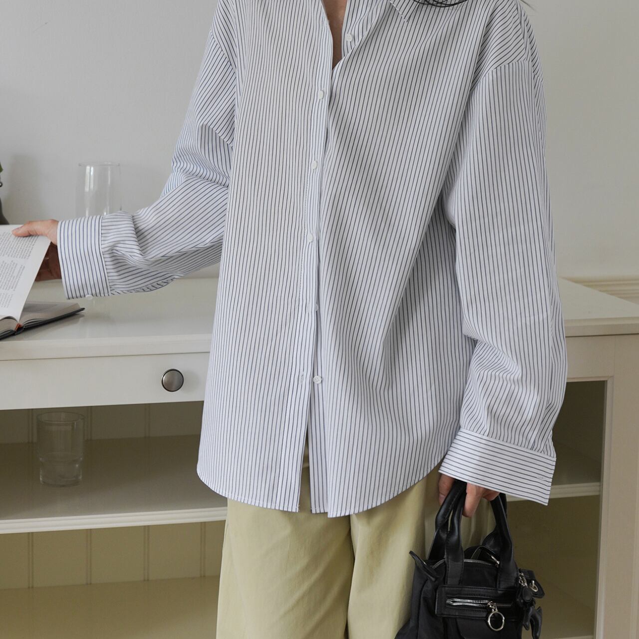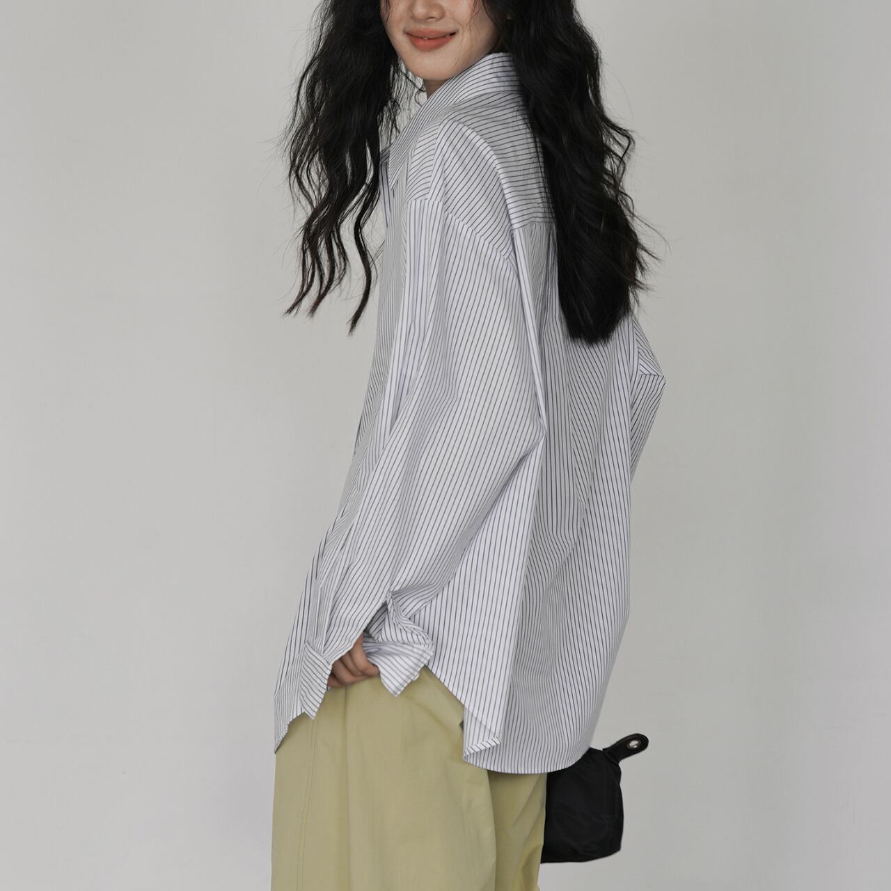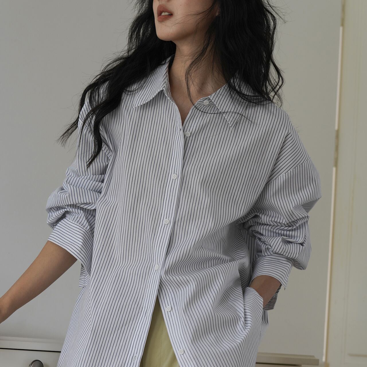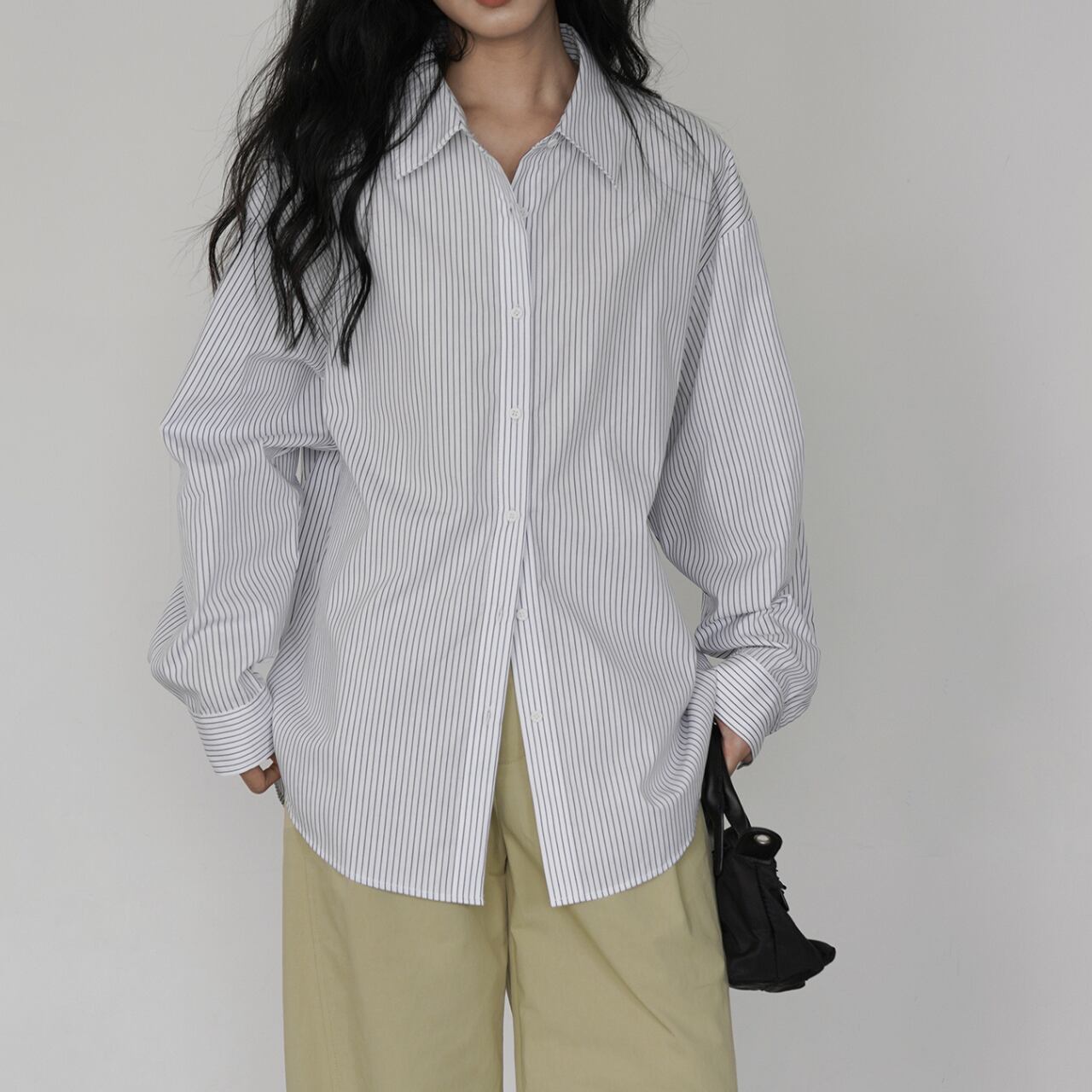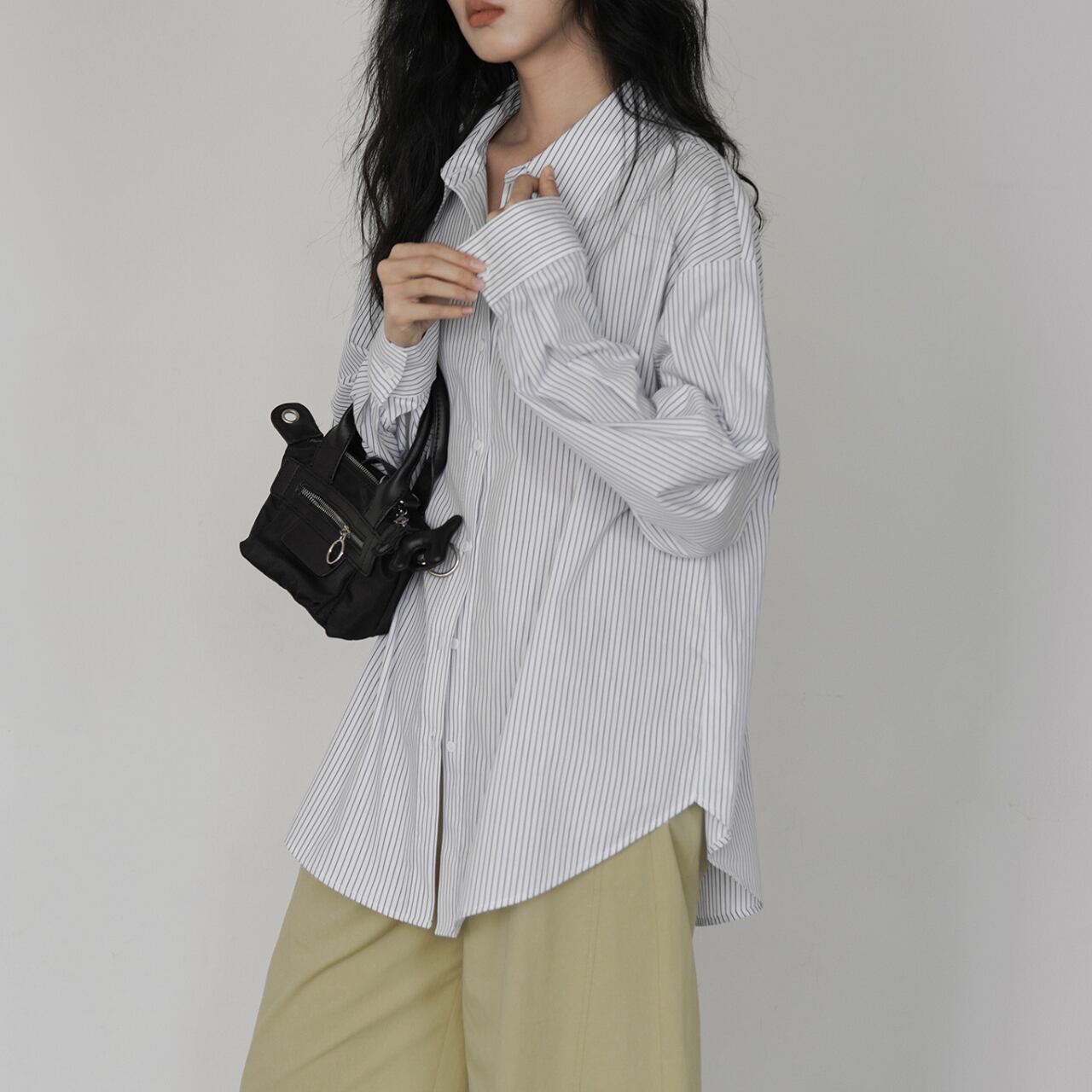 00041 ストライプ柄 長袖 オーバーサイズ レギュラーカラー シャツ
