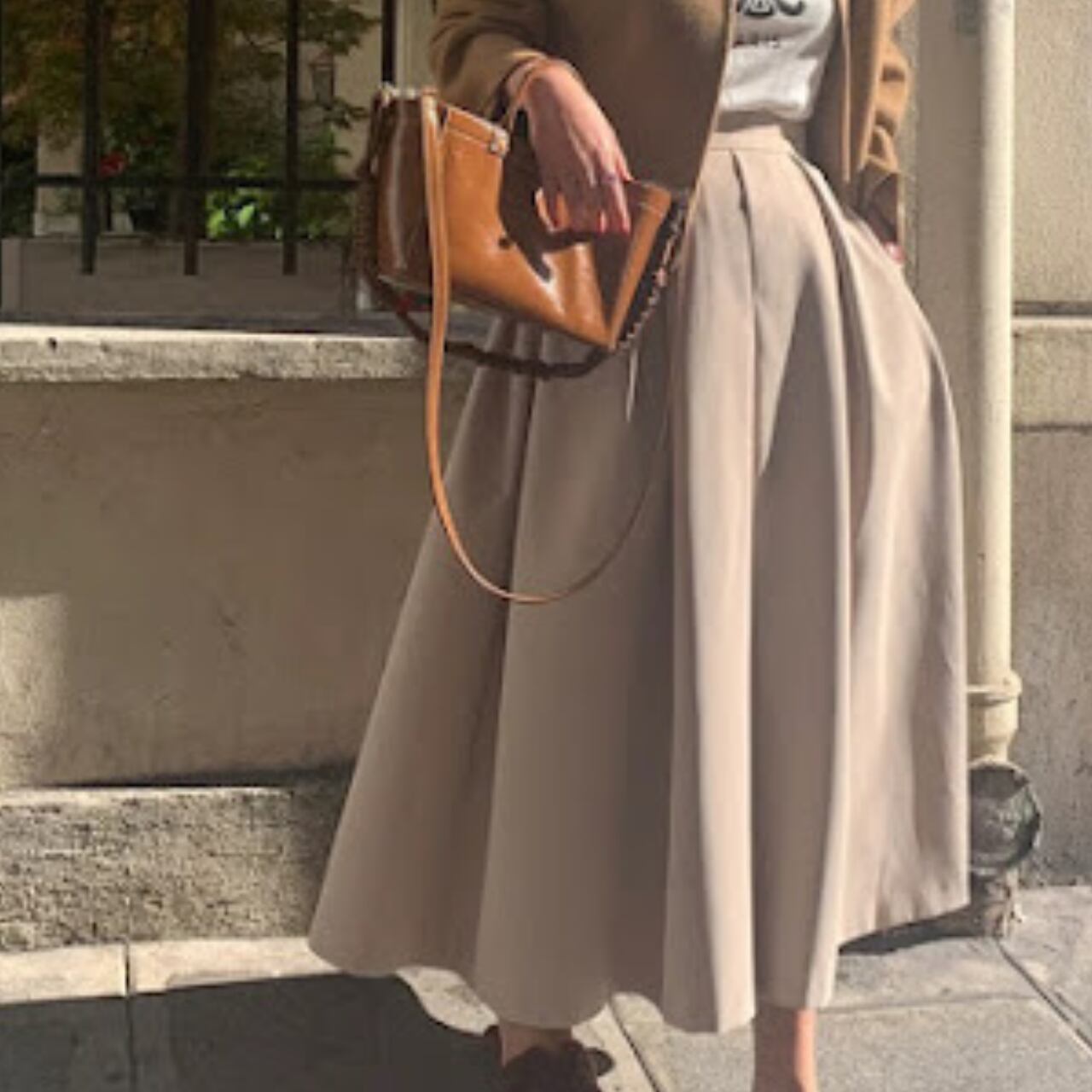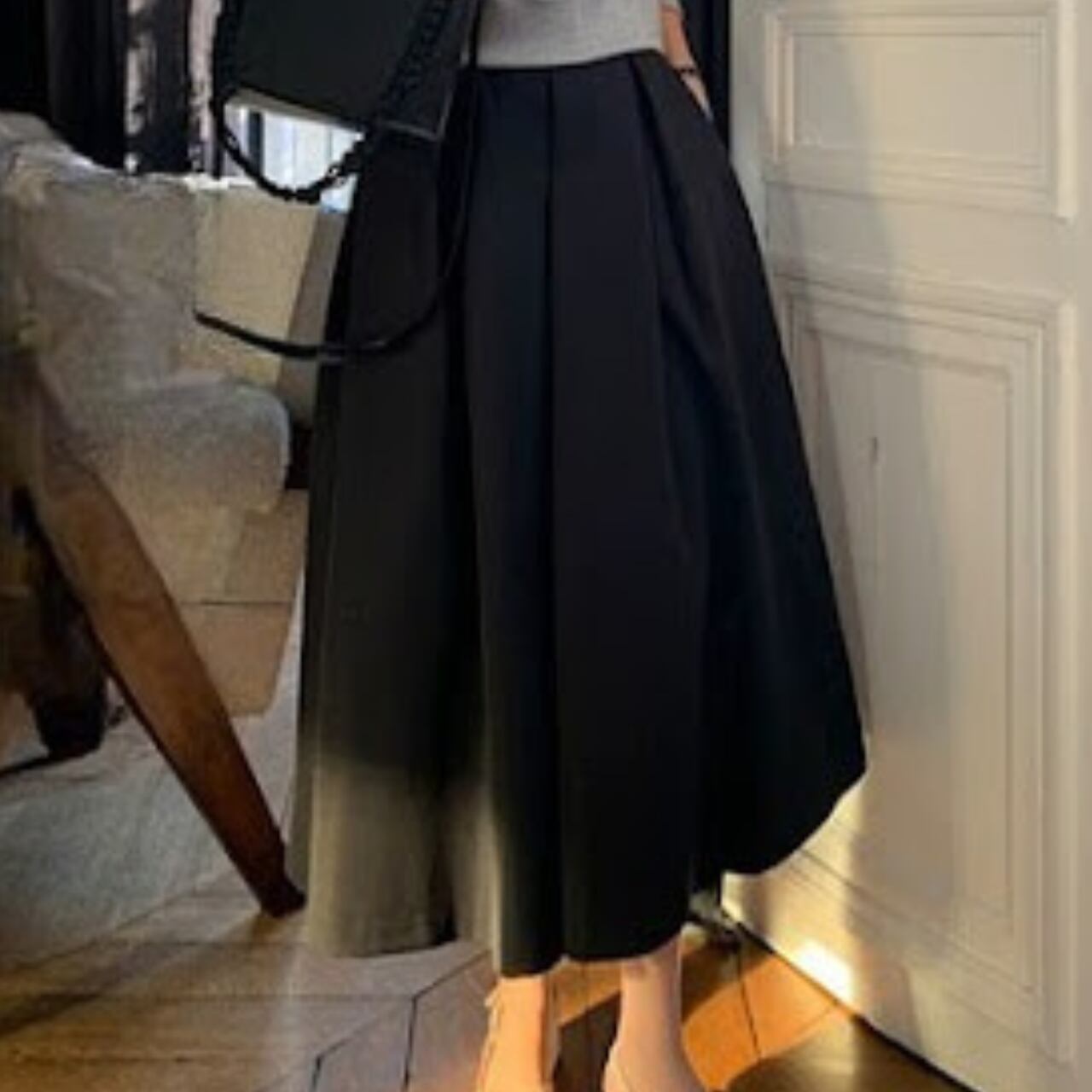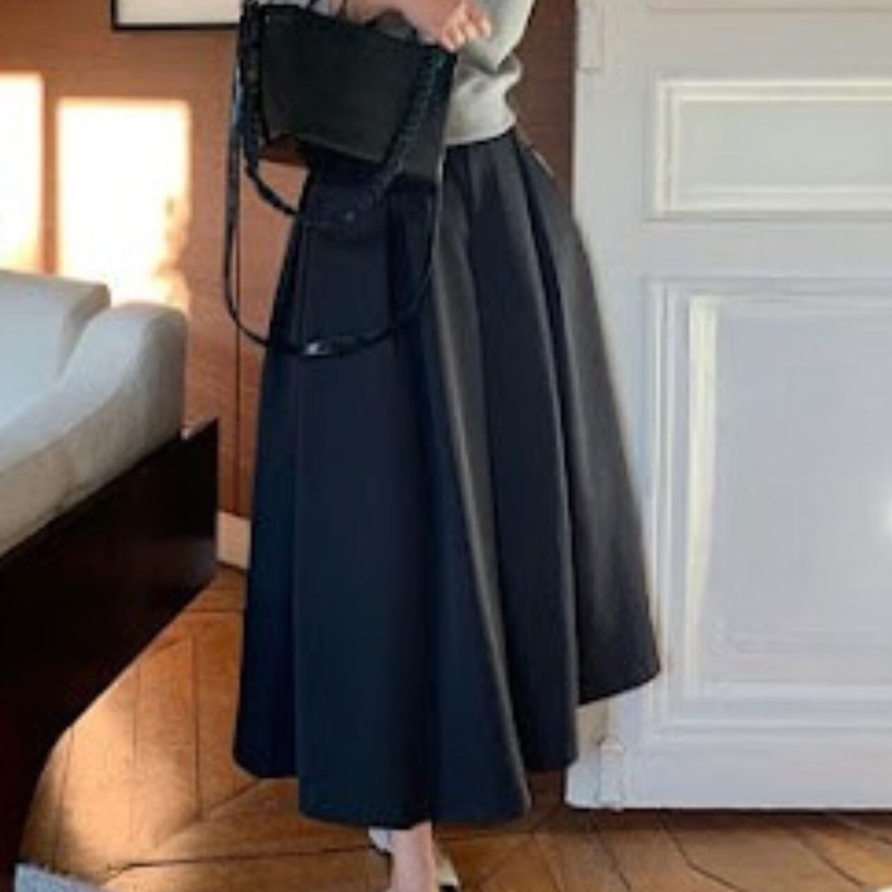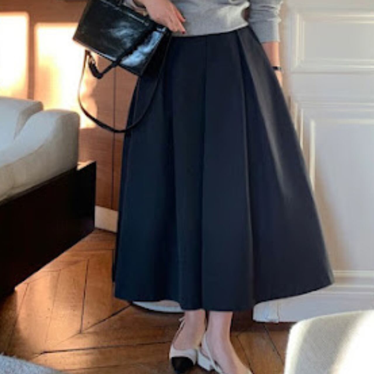 シーズンレスに活躍するミディアム丈スカート。