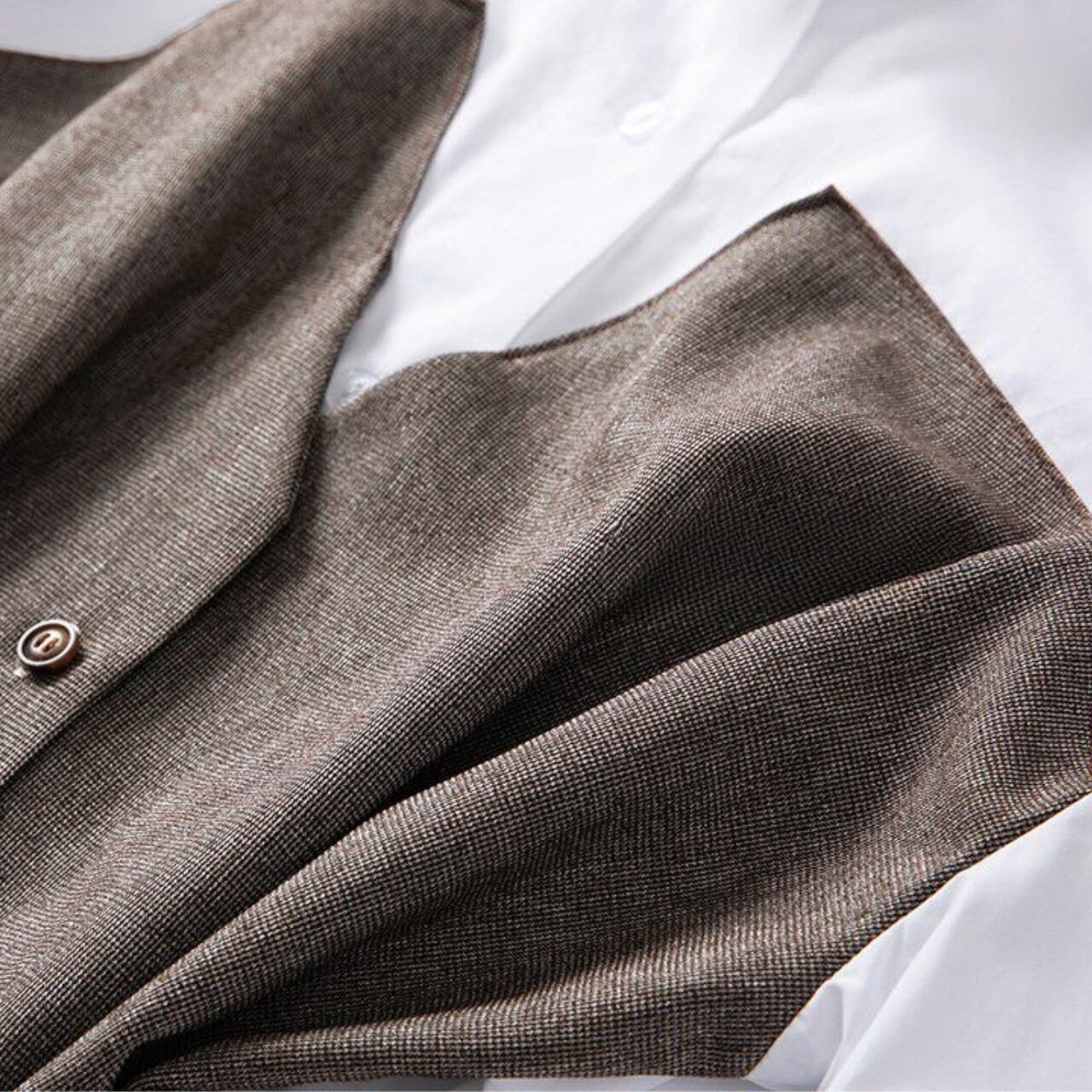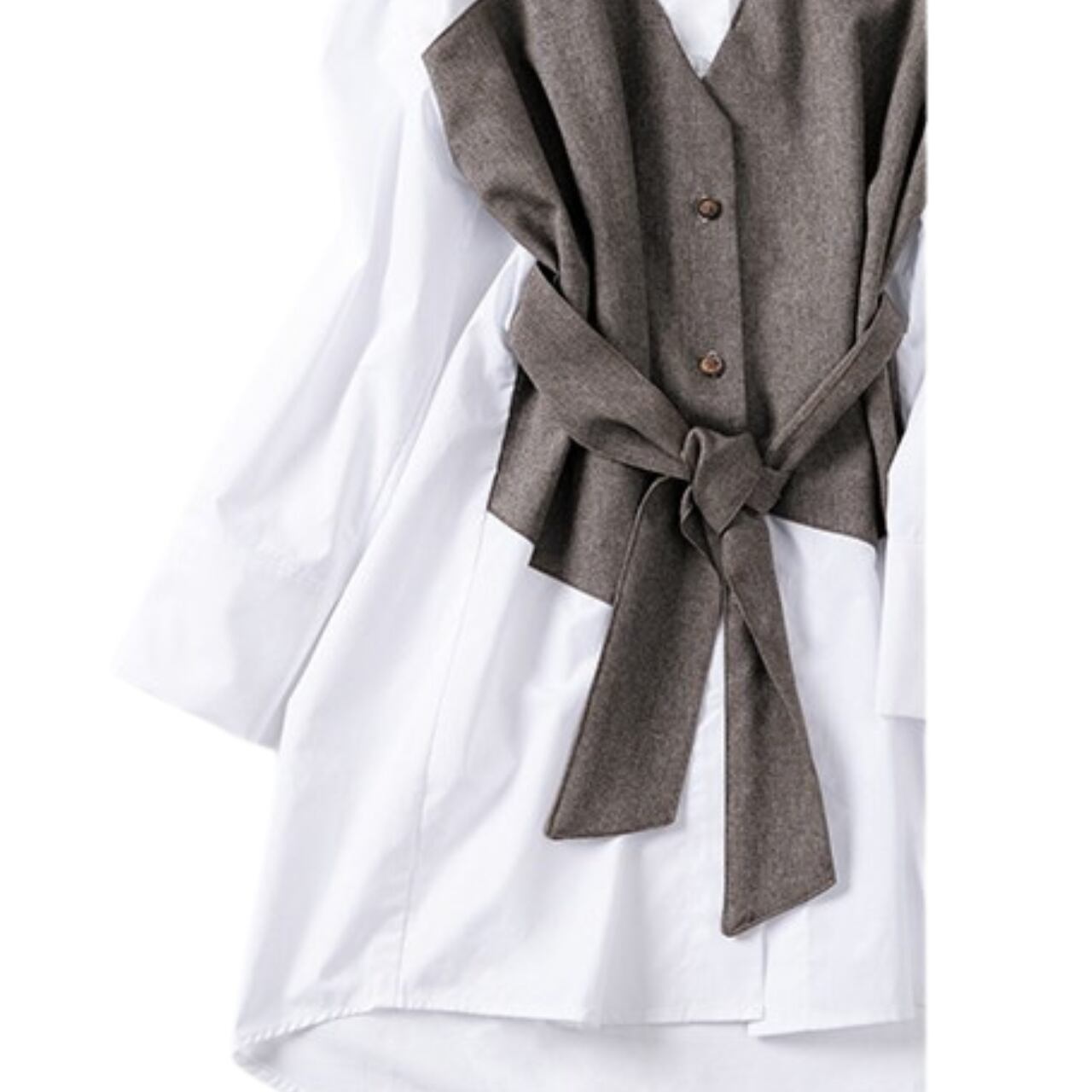 洗練されたデザインが魅力の、アシンメトリーロングシャツワンピース。リボンがアクセントとなり、シンプルな中にも女性らしさをプラスします。 一枚でワンピースとして着るのはもちろん、ボタンを開けて羽織りとしても使える着回し力の高さが魅力。パンツやスカートと合わせて、レイヤードスタイルも楽しめます。 デイリー使いから、ちょっとしたお出かけまで、様々なシーンで活躍。忙しい毎日でも、さっと着るだけでおしゃれが決まる、頼れる一枚です。 【カラー】 ホワイト×ブラウン 【素材】 コットン100% TR素材100% 【サイズ】(cm) S:肩幅45 / 胸囲108 / 着丈(前79 / 後89) / 袖丈57 M:肩幅46 / 胸囲112 / 着丈(前80 / 後90) / 袖丈58 L:肩幅47 / 胸囲115 / 着丈(前81 / 後91) / 袖丈59 XL:肩幅48 / 胸囲118 / 着丈(前82 / 後92) / 袖丈59 ※採寸方法により1〜3cmの誤差が生じる場合がございます。 【お届けについて】 こちらの商品は海外からのお取り寄せ商品のためご注文後、2〜3週間前後での発送となります。 あらかじめご了承の上、ご注文ください。 ◼️注意事項 ・タイミングによっては 商品在庫切れにより注文キャンセルとさせていただく恐れもございますので、予めご了承くださいませ。 ・こちらは輸入品となります。 日本製とは検品基準が異なる為、新品未使用品でもごくわずかな汚れや傷がある場合もございます。 あらかじめご了承の上、ご注文ください。 ・商品の色味は、お手持ちのスマートフォンの画面によって実物と若干異なる場合がございます。 ・イメージ違いやサイズ等、お客様都合による交換、返品、キャンセルは対応出来かねます。 ご不明点はご購入前にお問い合わせください。 ———————————— ご購入前にこちらをお読みください →https://fashion.vianca.shop/about ————————————