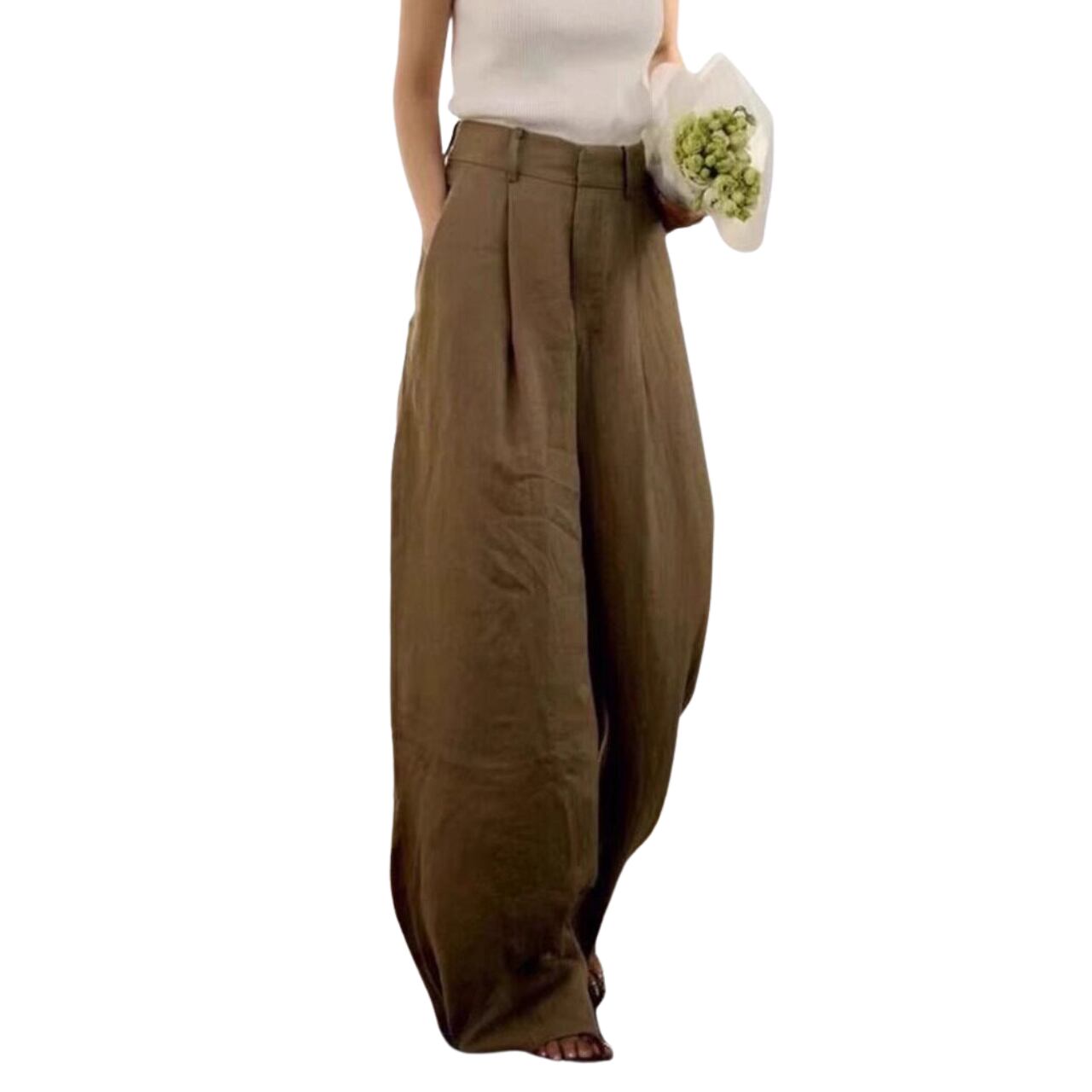 旬な着こなしが叶う、ツータックワイドパンツ。 いつものコーデに取り入れるだけで、こなれ感のあるスタイリングが完成します。 深めのタックが、立体的なシルエットを生み出し、おしゃれ度をアップ。 フルレングス丈なので、フラットシューズやヒールなど、足元を選ばず合わせやすいのもポイントです。 トップス次第で、カジュアルにもきれいめにも着こなせる万能アイテム。 ワードローブにぜひ加えていただきたい、おすすめの一着です。 【カラー】 ホワイト ブラウン 【素材】 綿65% ポリエステル25% その他10% 【サイズ】(cm) S:ウエスト64 / ヒップ102 / パンツ丈102 / 裾口58 M:ウエスト68 / ヒップ106 / パンツ丈103 / 裾口60 L:ウエスト72 / ヒップ110 / パンツ丈104 / 裾口62 XL:ウエスト76 / ヒップ114 / パンツ丈105 / 裾口64 ※採寸方法により2〜4cmの誤差誤差がある場合がございます。 【お届けについて】 こちらの商品は海外からのお取り寄せ商品のためご注文後、2〜3週間前後での発送となります。 あらかじめご了承の上、ご注文ください。 ◼️注意事項 ・タイミングによっては 商品在庫切れにより注文キャンセルとさせていただく恐れもございますので、予めご了承くださいませ。 ・こちらは輸入品となります。 日本製とは検品基準が異なる為、新品未使用品でもごくわずかな汚れや傷がある場合もございます。 あらかじめご了承の上、ご注文ください。 ・商品の色味は、お手持ちのスマートフォンの画面によって実物と若干異なる場合がございます。 ・イメージ違いやサイズ等、お客様都合による交換、返品、キャンセルは対応出来かねます。 ご不明点はご購入前にお問い合わせください。 ———————————— ご購入前にこちらをお読みください →https://fashion.vianca.shop/about ————————————
