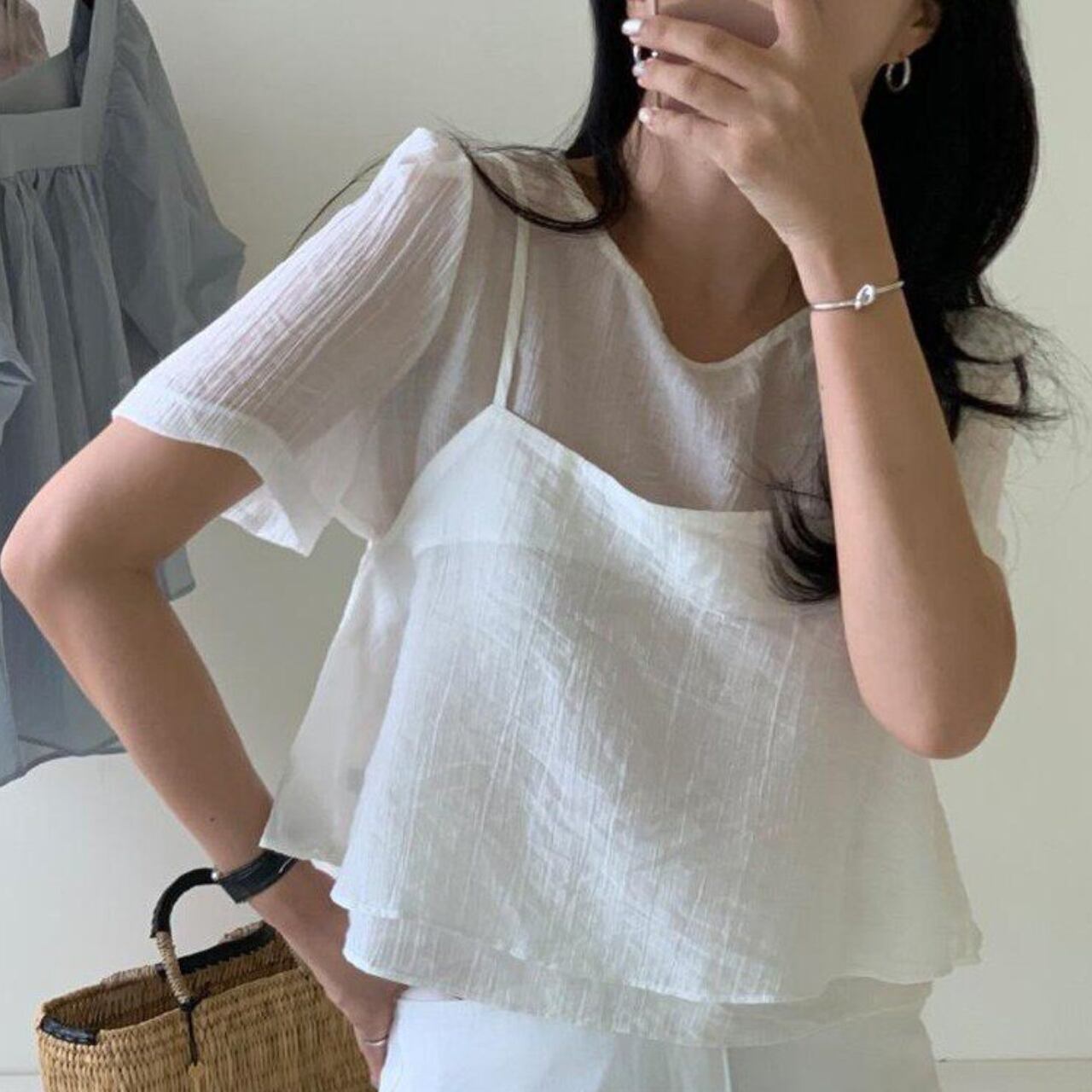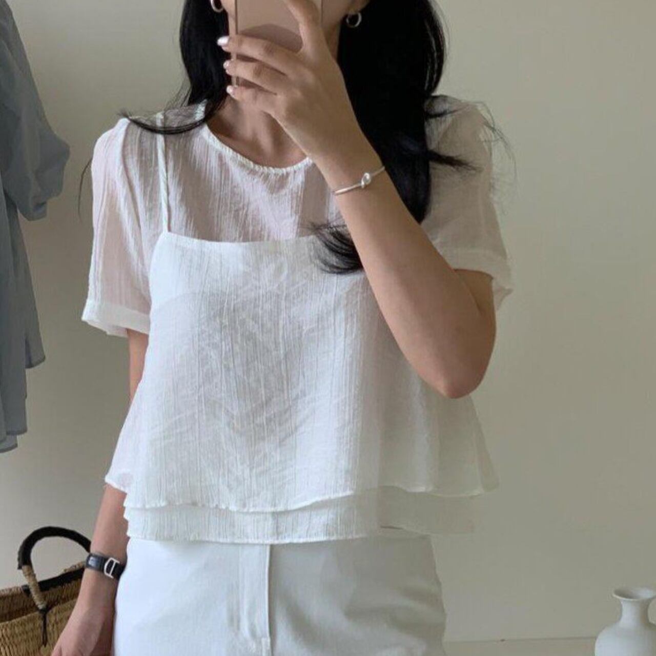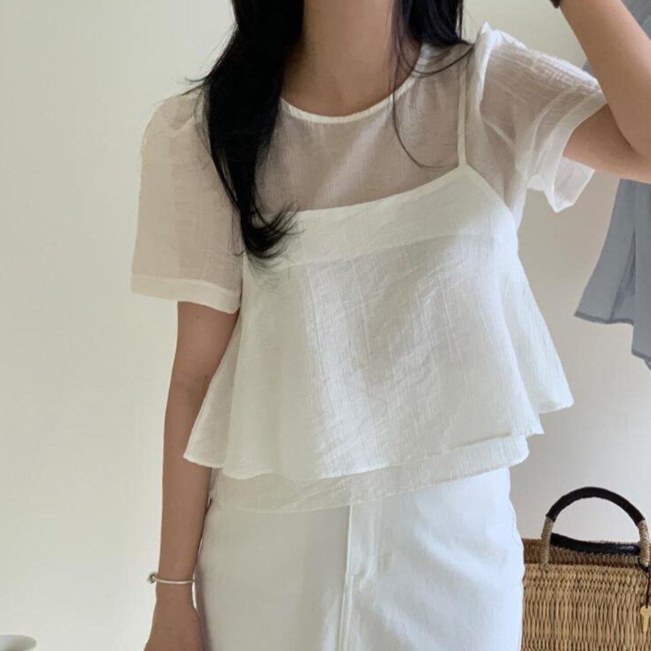 程よい甘さと、すっきりとした着こなしを叶えるブラウス。 ペプラムデザインが女性らしさを引き立てます。 カジュアルなデニムと合わせて普段使いに、きれいめなスカートと合わせてオフィススタイルにと、様々なシーンで活躍します。 【カラー】 ピンク ホワイト ブラック 【素材】 テンセル80% ポリエステル20% 【サイズ】(cm) フリー:胸囲92 / 着丈51 ※採寸方法により1〜3cmの誤差が生じる場合がございます。 【セット商品について】 ※こちらの商品は**2点セット(トップス+キャミソール)**での販売となります。 単品での販売は行っておりません。 ※それぞれのアイテムのサイズ・シルエットは若干異なる場合がございます。 ※セット商品のため、一部商品のみの返品・交換はお受けできません。 【お届けについて】 こちらの商品は海外からのお取り寄せ商品のためご注文後、2〜3週間前後での発送となります。 あらかじめご了承の上、ご注文ください。 ◼️注意事項 ・タイミングによっては 商品在庫切れにより注文キャンセルとさせていただく恐れもございますので、予めご了承くださいませ。 ・こちらは輸入品となります。 日本製とは検品基準が異なる為、新品未使用品でもごくわずかな汚れや傷がある場合もございます。 あらかじめご了承の上、ご注文ください。 ・商品の色味は、お手持ちのスマートフォンの画面によって実物と若干異なる場合がございます。 ・イメージ違いやサイズ等、お客様都合による交換、返品、キャンセルは対応出来かねます。 ご不明点はご購入前にお問い合わせください。 ———————————— ご購入前にこちらをお読みください →https://fashion.vianca.shop/about ————————————