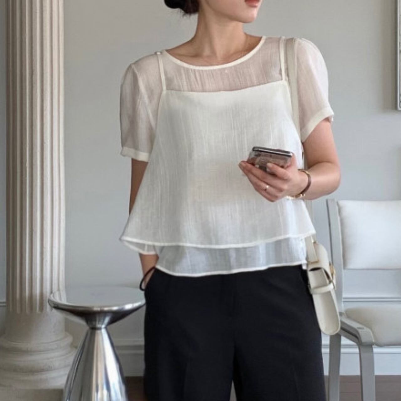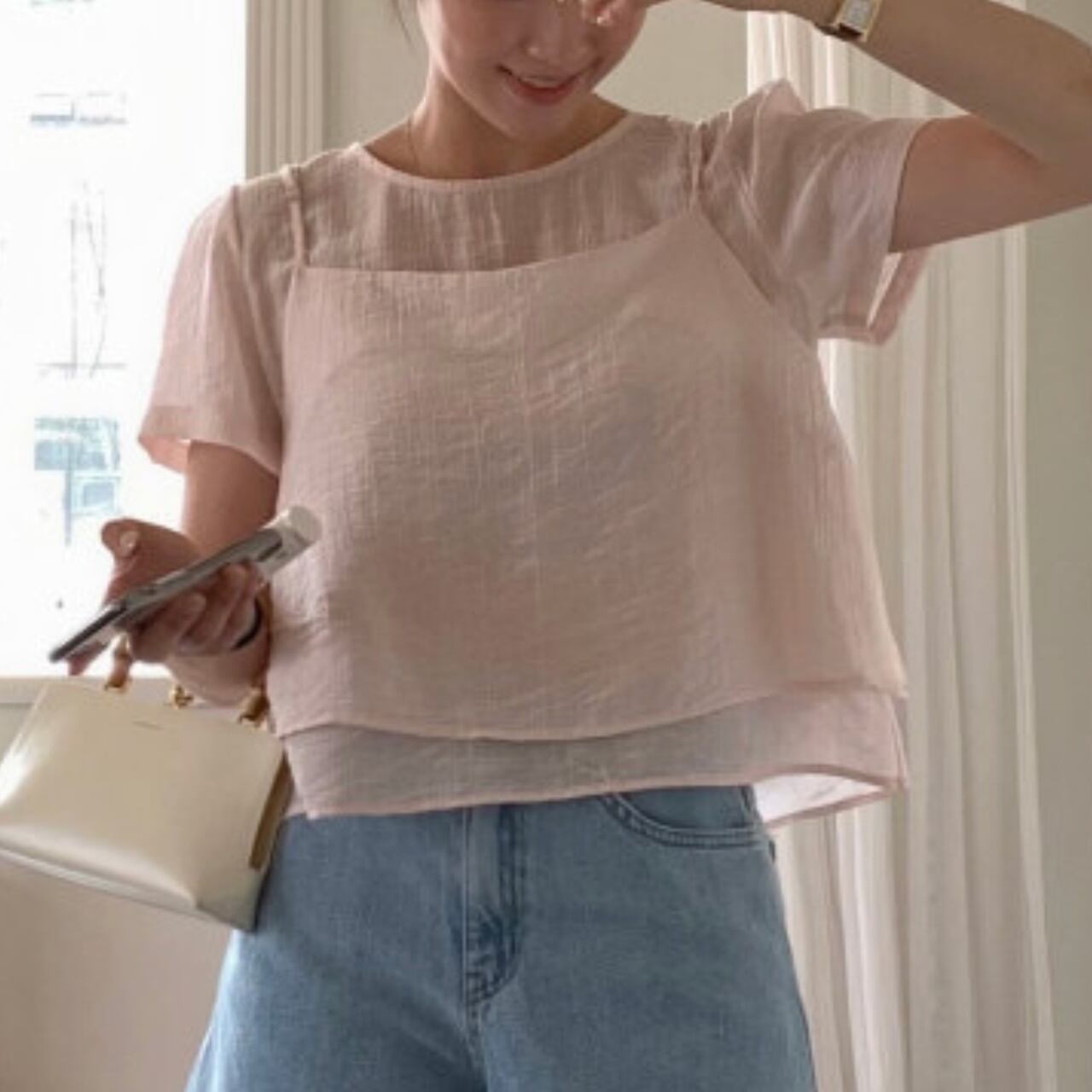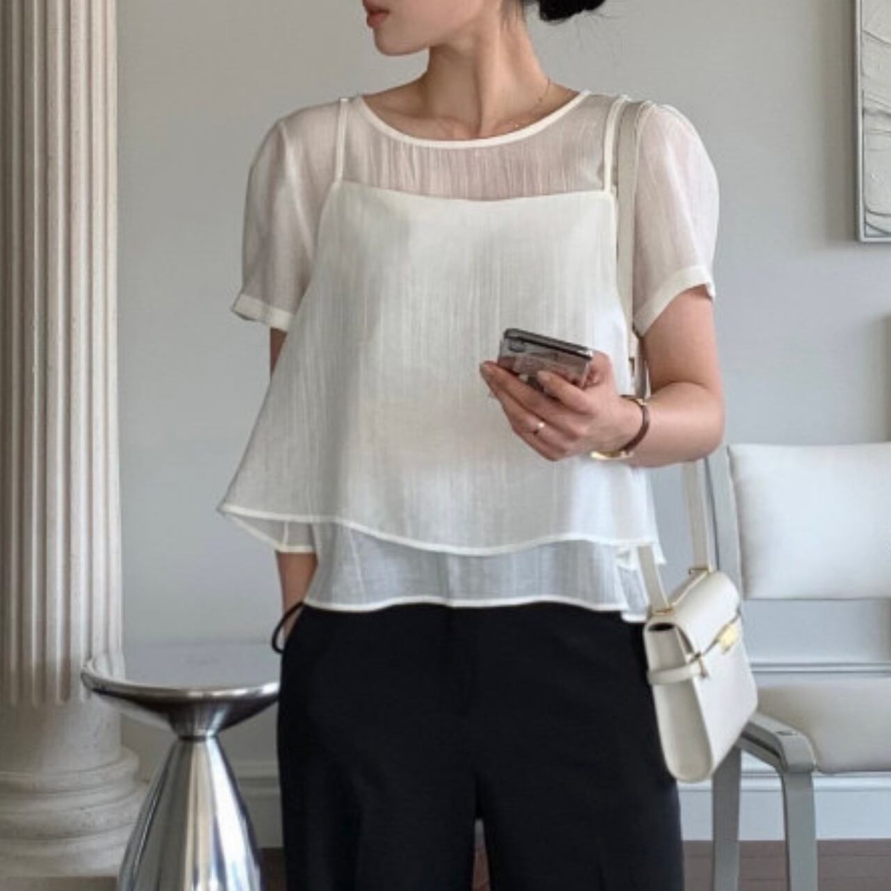程よい甘さと、すっきりとした着こなしを叶えるブラウス。 ペプラムデザインが女性らしさを引き立てます。 カジュアルなデニムと合わせて普段使いに、きれいめなスカートと合わせてオフィススタイルにと、様々なシーンで活躍します。 【カラー】 ピンク ホワイト ブラック 【素材】 テンセル80% ポリエステル20% 【サイズ】(cm) フリー:胸囲92 / 着丈51 ※採寸方法により1〜3cmの誤差が生じる場合がございます。 【セット商品について】 ※こちらの商品は**2点セット(トップス+キャミソール)**での販売となります。 単品での販売は行っておりません。 ※それぞれのアイテムのサイズ・シルエットは若干異なる場合がございます。 ※セット商品のため、一部商品のみの返品・交換はお受けできません。 【お届けについて】 こちらの商品は海外からのお取り寄せ商品のためご注文後、2〜3週間前後での発送となります。 あらかじめご了承の上、ご注文ください。 ◼️注意事項 ・タイミングによっては 商品在庫切れにより注文キャンセルとさせていただく恐れもございますので、予めご了承くださいませ。 ・こちらは輸入品となります。 日本製とは検品基準が異なる為、新品未使用品でもごくわずかな汚れや傷がある場合もございます。 あらかじめご了承の上、ご注文ください。 ・商品の色味は、お手持ちのスマートフォンの画面によって実物と若干異なる場合がございます。 ・イメージ違いやサイズ等、お客様都合による交換、返品、キャンセルは対応出来かねます。 ご不明点はご購入前にお問い合わせください。 ———————————— ご購入前にこちらをお読みください →https://fashion.vianca.shop/about ————————————