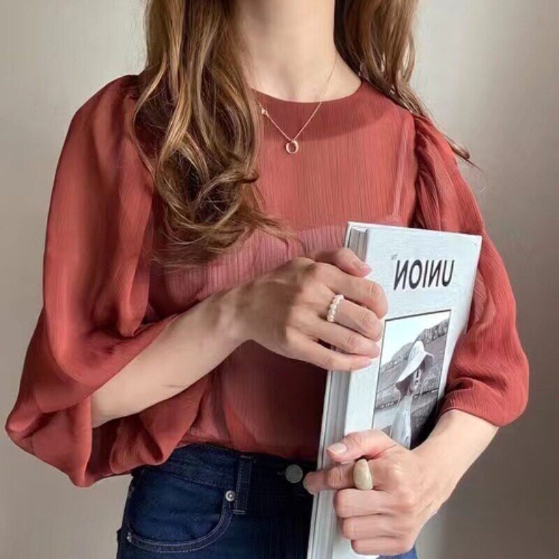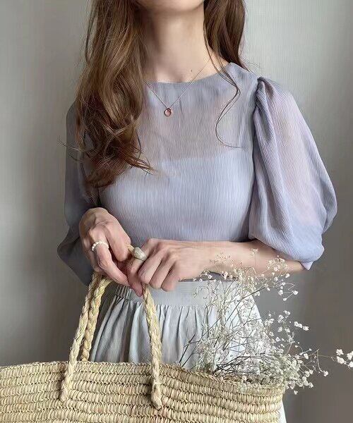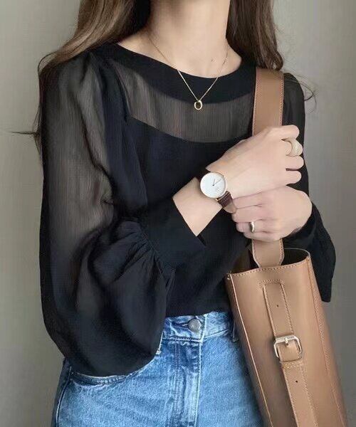 上品な透け感が魅力のブラウス。ふんわりとしたパフスリーブが、女性らしさを引き立てます。 カジュアルなデニムに合わせれば、程よい抜け感をプラス。オフィススタイルには、ジャケットと合わせて上品に着こなせます。 普段使いから、ちょっとしたお出かけまで、様々なシーンで活躍する一枚です。 【カラー】 ベージュ ピンク くすみグリーン ネイビー ブラック くすみパープル オレンジ 【素材】 ポリエステル100% 【サイズ】(cm) M:肩幅36 / 胸囲100 / 着丈59 L:肩幅38 / 胸囲104 / 着丈62 ※採寸方法により1〜3cmの誤差が生じる場合がございます。 【ご購入について】 こちらの商品は トップス+インナーの2点セット販売 となります。 単品での販売は行っておりませんのでご了承ください。 【お届けについて】 こちらの商品は海外からのお取り寄せ商品のためご注文後、2〜3週間前後での発送となります。 あらかじめご了承の上、ご注文ください。 ◼️注意事項 ・タイミングによっては 商品在庫切れにより注文キャンセルとさせていただく恐れもございますので、予めご了承くださいませ。 ・こちらは輸入品となります。 日本製とは検品基準が異なる為、新品未使用品でもごくわずかな汚れや傷がある場合もございます。 あらかじめご了承の上、ご注文ください。 ・商品の色味は、お手持ちのスマートフォンの画面によって実物と若干異なる場合がございます。 ・イメージ違いやサイズ等、お客様都合による交換、返品、キャンセルは対応出来かねます。 ご不明点はご購入前にお問い合わせください。 ———————————— ご購入前にこちらをお読みください →https://fashion.vianca.shop/about ————————————
